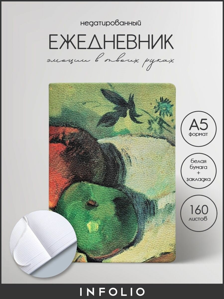 Обложка: твердая с поролоном. фактурная искусственная кожа с печатью картины Поля Гогена "Яблоки в чаше" 1887 г.