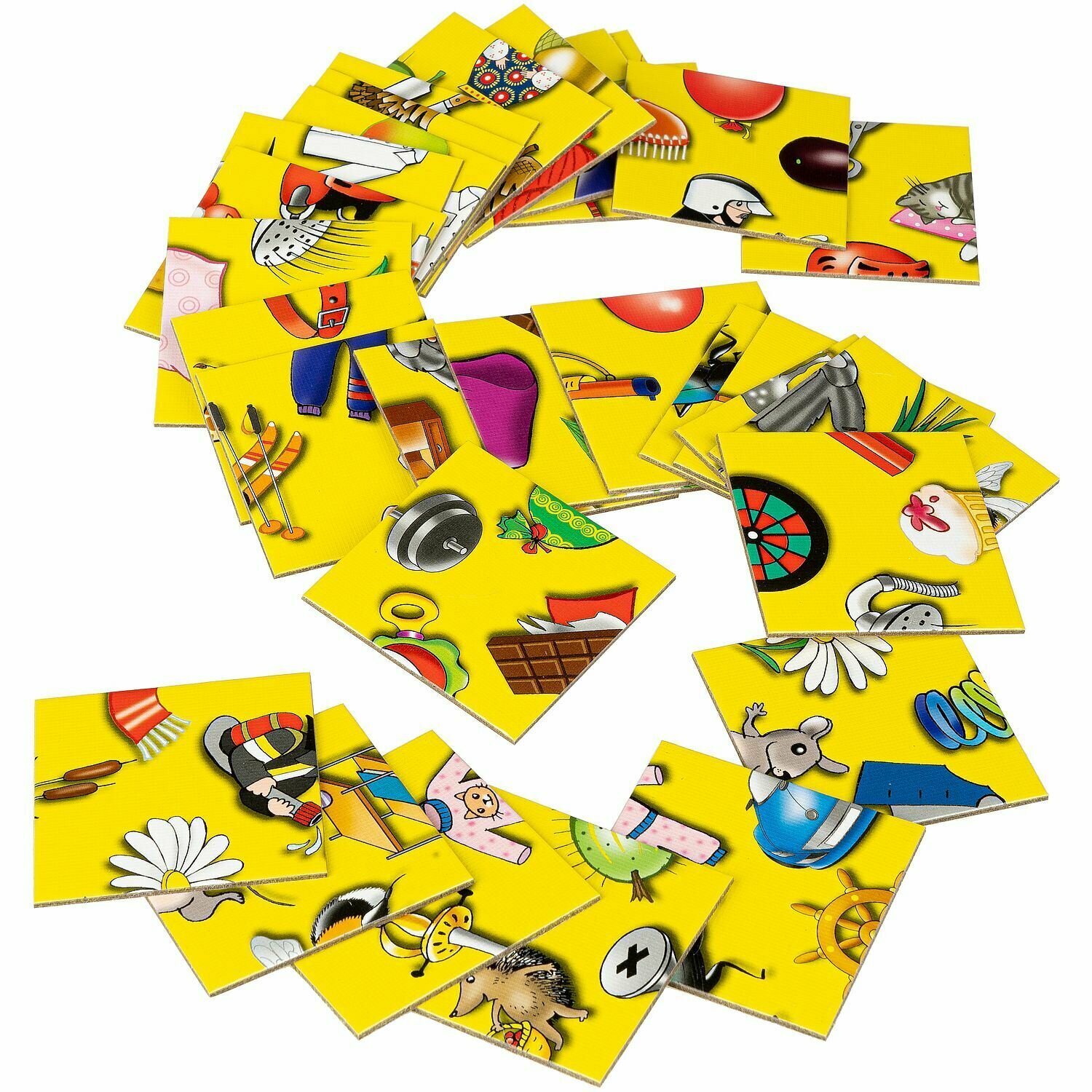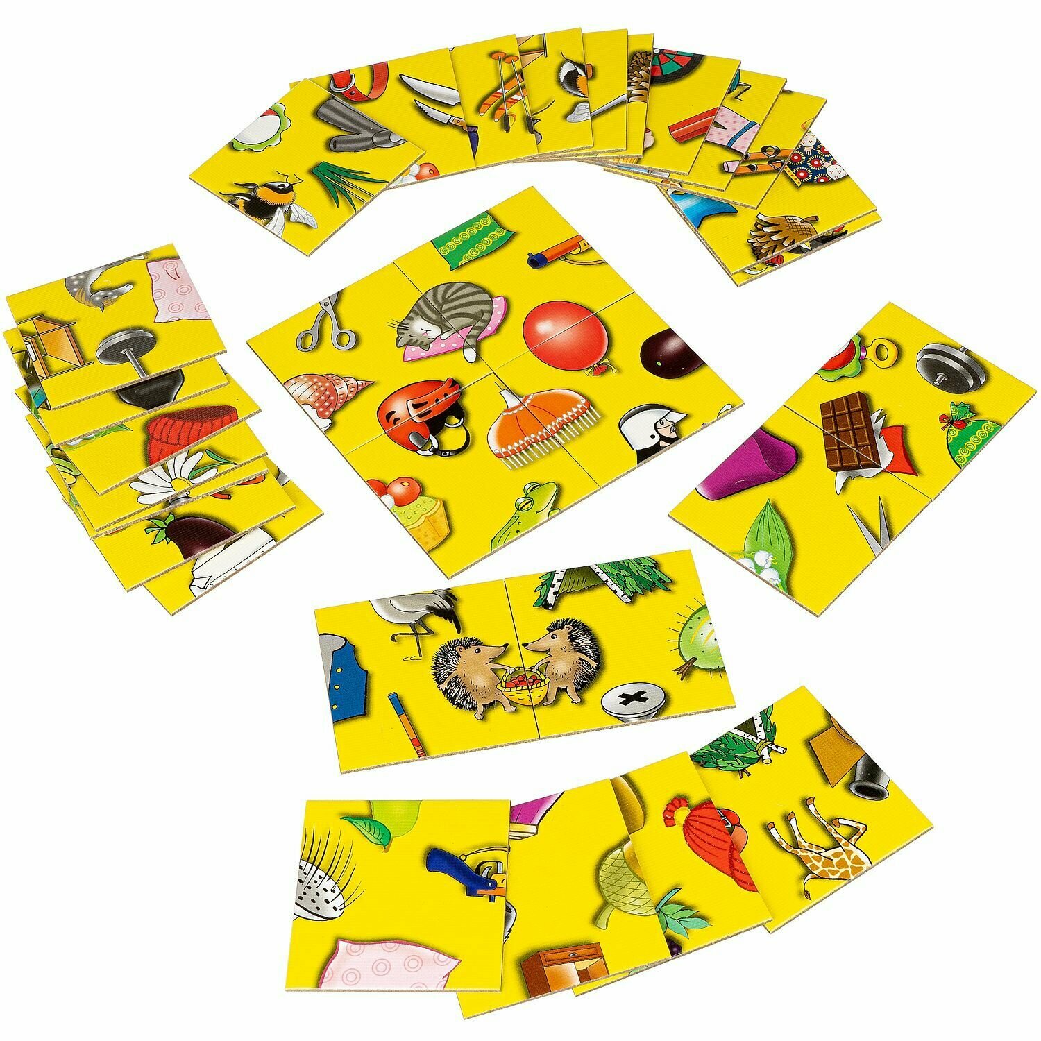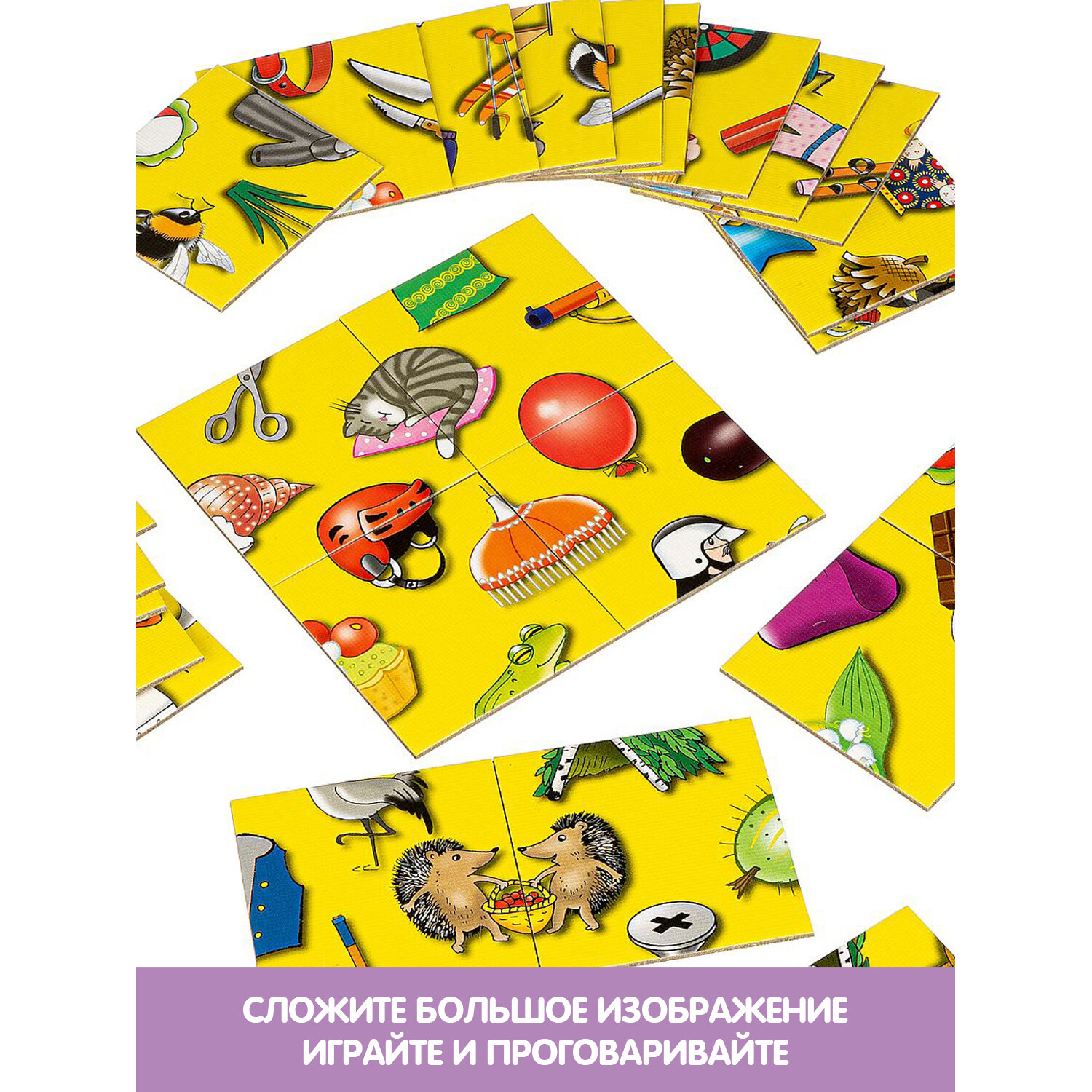 ПРАВИЛА ИГРЫ: Вам необходимо сложить из 30-ти маленьких квадратных карточек большое изображение таким образом, чтобы каждая картинка нашла свою вторую половинку. Обратите внимание, что рисунок получается незамкнутый, это значит, что картинку можно положить с любой стороны. Выигрывает тот, кто первым выложит все свои карточки на игровом поле.