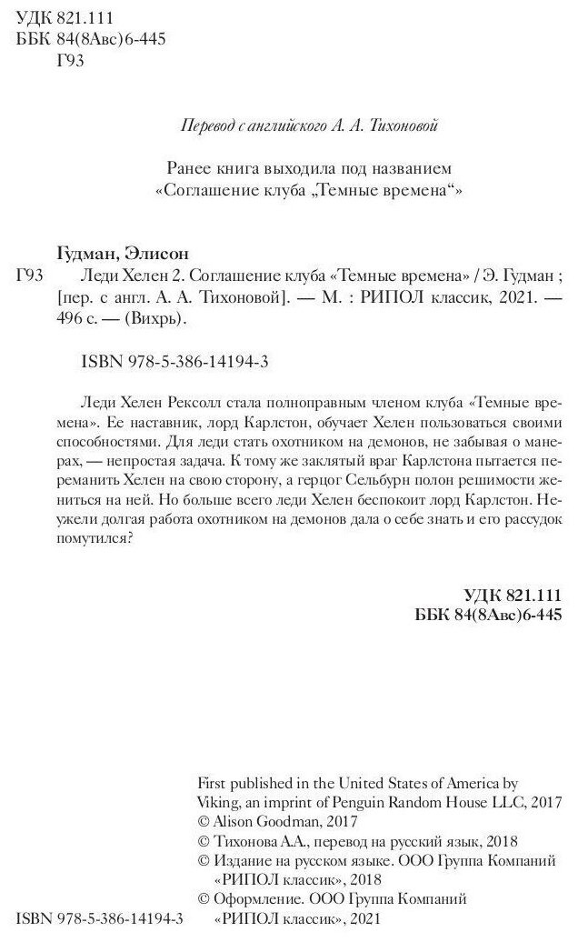 Леди Хелен 2. Соглашение клуба "Темные времена" (Гудман Э.); РИПОЛ классик Группа Компаний ООО, 2021