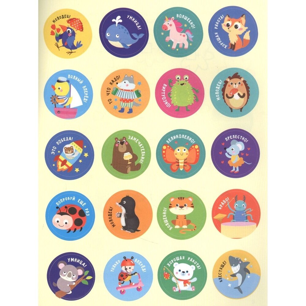 Не секрет, что хвалить ребёнка очень важно. Ведь тем самым вы поддерживаете у него интерес к учёбе и уверенность в своих силах. В этих прописях за правильное и аккуратное выполнение заданий вашего маленького ученика ждут призы - поощрительные наклейки. Ребёнок сам может выбрать понравившуюся ему наклейку и разместить её рядом с выполненным заданием.