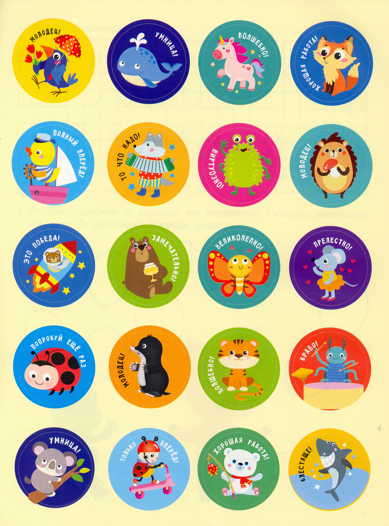 Не секрет, что хвалить ребёнка очень важно. Ведь тем самым вы поддерживаете у него интерес к учёбе и уверенность в своих силах. В этих прописях за правильное и аккуратное выполнение заданий вашего маленького ученика ждут призы - поощрительные наклейки. Ребёнок сам может выбрать понравившуюся ему наклейку и разместить её рядом с выполненным заданием.