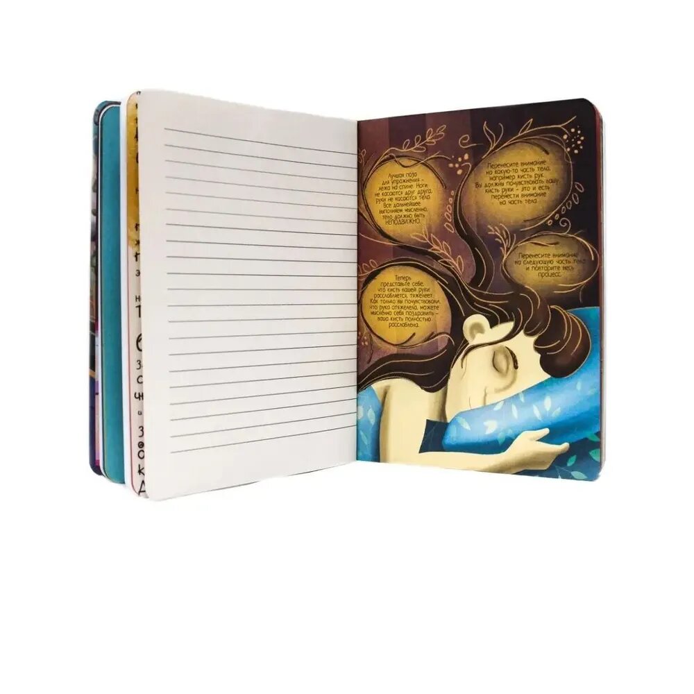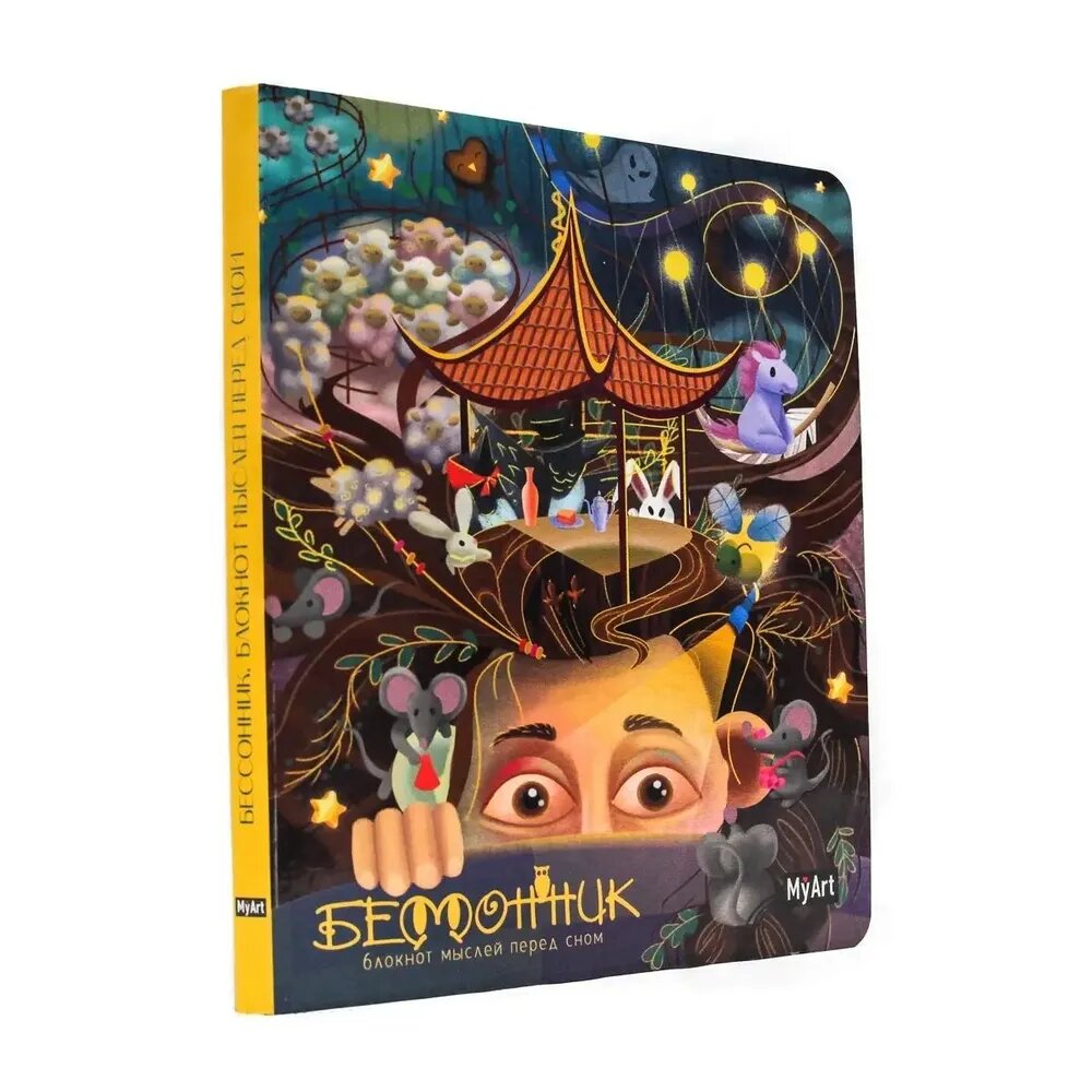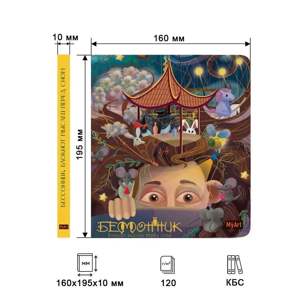 В блокноте мыслей перед сном вас ждут 160 страниц с яркими картинками, рекомендациями при бессоннице, трекеры сна, познавательными фактами о сновидениях и ещё много всего интересного!