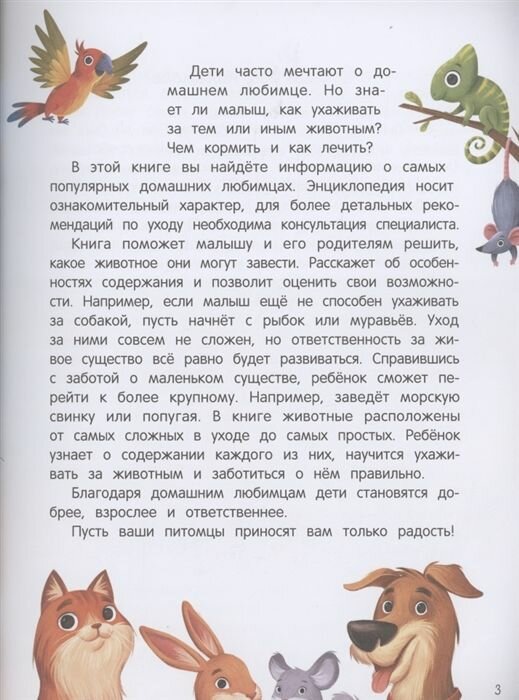 Книга расскажет об особенностях содержания различных животных и позволит оценить свои возможности. Например, если малыш еще не способен ухаживать за собакой, он может начать с рыбок или муравьев. Справившись с заботой о маленьком существе, ребенок сможет перейти к более крупному. Например, заведет морскую свинку или попугая. Пусть ваши питомцы приносят вам только радость!