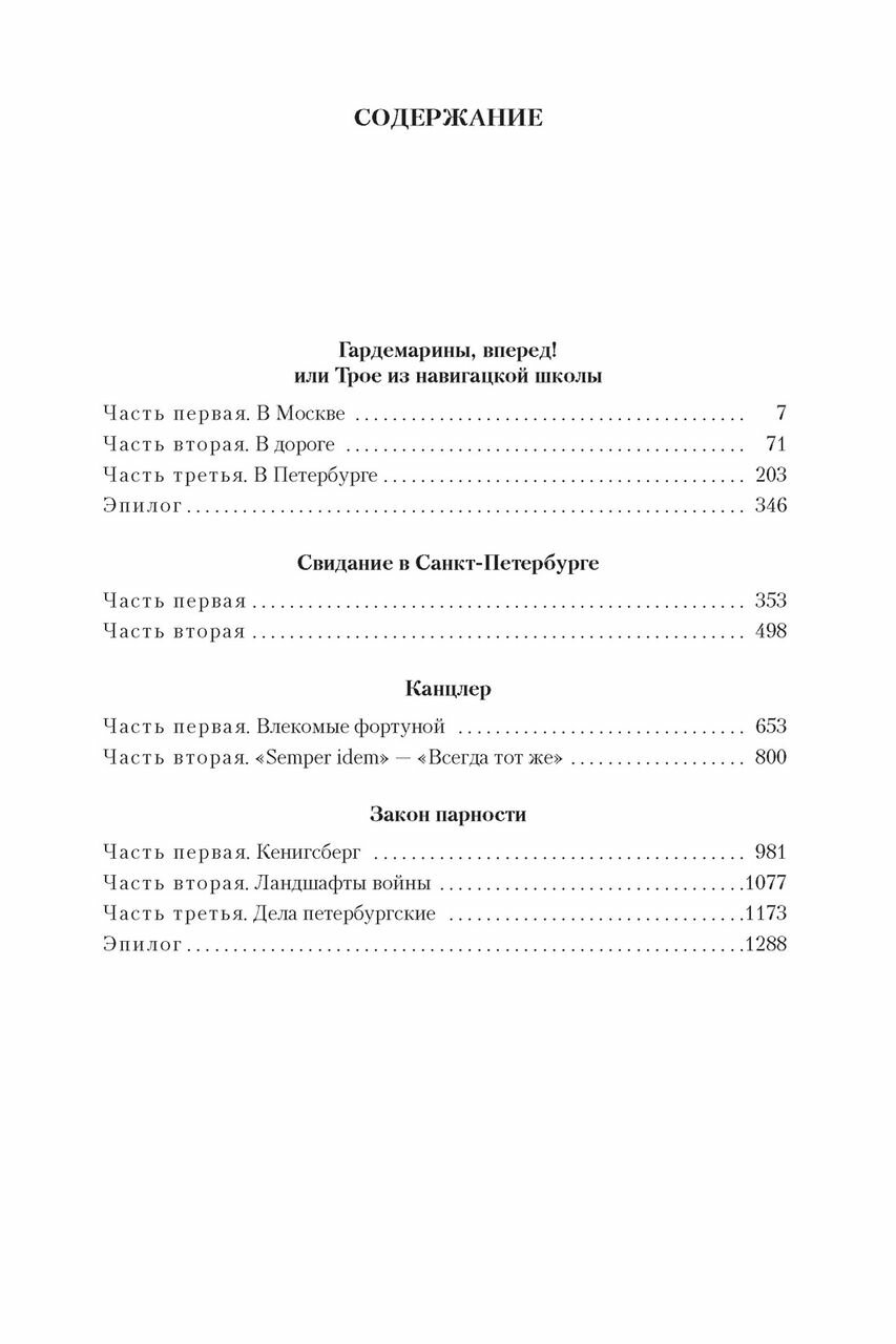 Россия, XVIII век. Трое воспитанников навигацкой школы — Александр Белов, Алеша Корсак и Никита Оленев — по стечению обстоятельств оказались вовлечены в дела государственной важности. На карту поставлено многое: и жизнь, и любовь, и честь российской короны. Друзья мечтали о приключениях и славе, и вот теперь им на деле предстоит испытать себя и сыграть в опасную игру с великими мира сего, окунувшись в пучину дворцовых интриг и политических заговоров. И какие бы испытания ни посылала им судьба, гардемарины всегда остаются верны дружбе и следуют своему главному девизу: «Жизнь Родине, честь — никому!» Захватывающий сюжет, полный опасных приключений и неожиданных поворотов, разворачивается на фоне одной из самых интересных эпох российской истории, во времена правления императрицы Елизаветы, дочери Петра Великого. В 1988–1992 гг. романы о гардемаринах были экранизированы Светланой Дружининой и имели оглушительный успех, а «русские мушкетеры» Дмитрий Харатьян, Сергей Жигунов и Владимир Шевельков снискали всеобщую любовь зрителей. В настоящем издании цикл романов о гардемаринах Нины Соротокиной представлен в полном объеме и включает «Гардемарины, вперед! или Трое из навигацкой школы», «Свидание в Санкт-Петербурге», «Канцлер», «Закон парности».