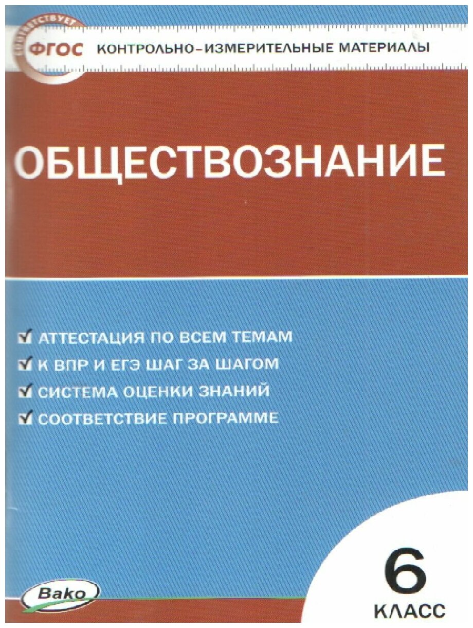 Контрольно-измерительные материалы Обществознание 6 класс (Волкова Катерина Владимировна); ВАКО, 2022
