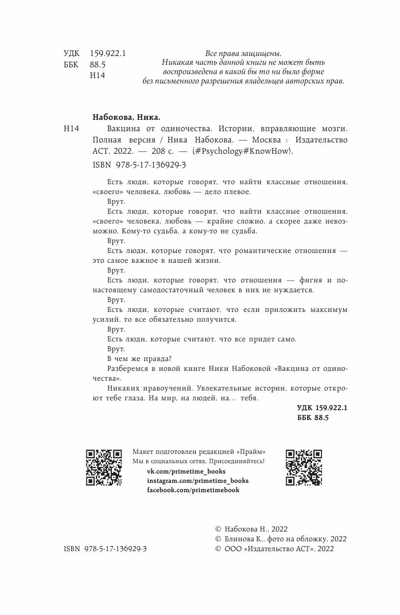 Вакцина от одиночества Истории вправляющие мозги Полная версия (Ника Набокова); Издательство АСТ, 2022