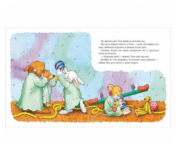 сестре с ними поиграть. В детском саду Тим тоже жадничает — набирает кучу игрушек и сидит один в сторонке. Вот