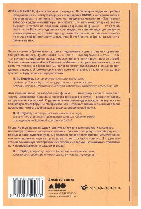 миниатюры знакомят вас с яркими природными явлениями или необычными закономерностями из самых разных разделов физики. Вы удивитесь: несмотря на то что предлагаемые задачи выходят далеко за пределы школьной и даже университетской программы, благодаря предисловию и подсказкам они вполне