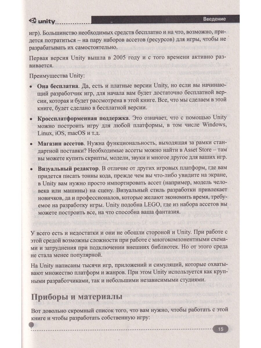 В этой книге мы расскажем, как с использованием Unity (популярной межплатформенной среды разработки компьютерных игр) вы сможете САМИ создавать свои игры и трехмерные миры, причем без лишних затрат и профессиональных навыков программирования.Книга поделена на три части. Первая часть посвящена изучению интерфейса и основных возможностей Unity. Мы поговорим о двух- и трехмерных проектах; рассмотрим ключевые особенности Unity; узнаем, как использовать ассеты; подробном изучим интерфейс Unity; узнаем об игровых объектах, сценах, камерах, источниках света; создадим свои первые Unity-проекты.Во второй части мы поговорим о других важных частях Unity - о графике; о физике; рассмотрим основы скриптинга (написания сценариев - скриптов); узнаем как работать со звуком; как настроить навигацию в игре; как использовать анимацию и многое другое.Ну и в заключительной, третьей, части полученных знаний из первых двух частей нам хватит для создания полноценной игры. Рассмотрен весь цикл создания игры - от этапа планирования игрового мира до настройки игрового интерфейса. Все этапы сопровождаются примерами программных кодов и скриншотами. Если вы уже сейчас хотите создавать свои игры - то эта книга определенно для вас! Читайте и творите!