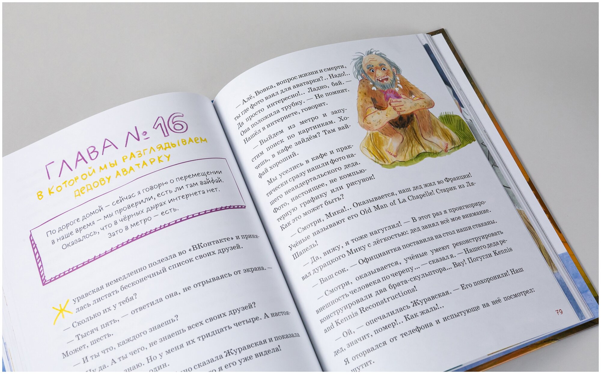 Книга была подарена ребёнку, но я не удержалась, и прочитала быстренько сама - буквально на одном дыхании. Для самостоятельного чтения отлично. Крупный, удобный шрифт, лёгкий текст. Встречаются довольно сложные слова, но для возраста 12-ти лет (если ориентироваться на возраст героев), нормально. Встречается сленг - текст не идеален, с литературной точки зрения. Было пару опечаток. Но всё это мелочи - сама история очень интересная, а главное - познавательная. И на довольно редкую тему для детских книг. Иллюстрации практически на каждой странице, только несколько разворотов без них.
