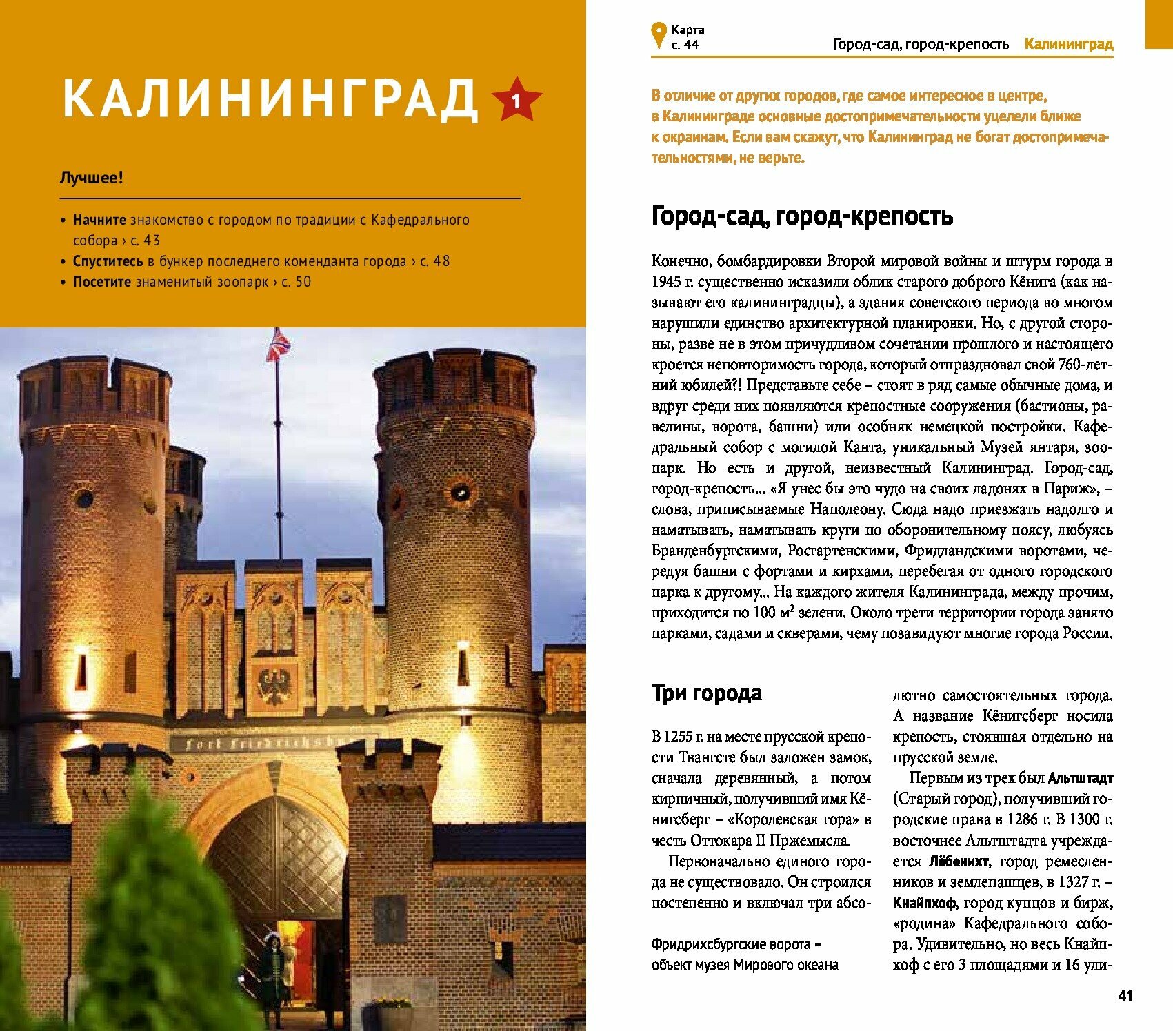 Год назад побывали впервые в Калининграде и собираемся вернуться. Выбирала путеводитель по компактности и содержанию. Вообще, выбор не слишком большой, но этот показался мне наиболее полным. Лёгкий, качественно выполненный, с описанием достопримечательностей Калининграда и крупных городов области. Есть карта-вложение, список отелей и мест для обеда/ужина, логичтические рекомендации. Рекомендую как вариант для того, чтобы сориентироваться на месте, куда пойти или поехать.