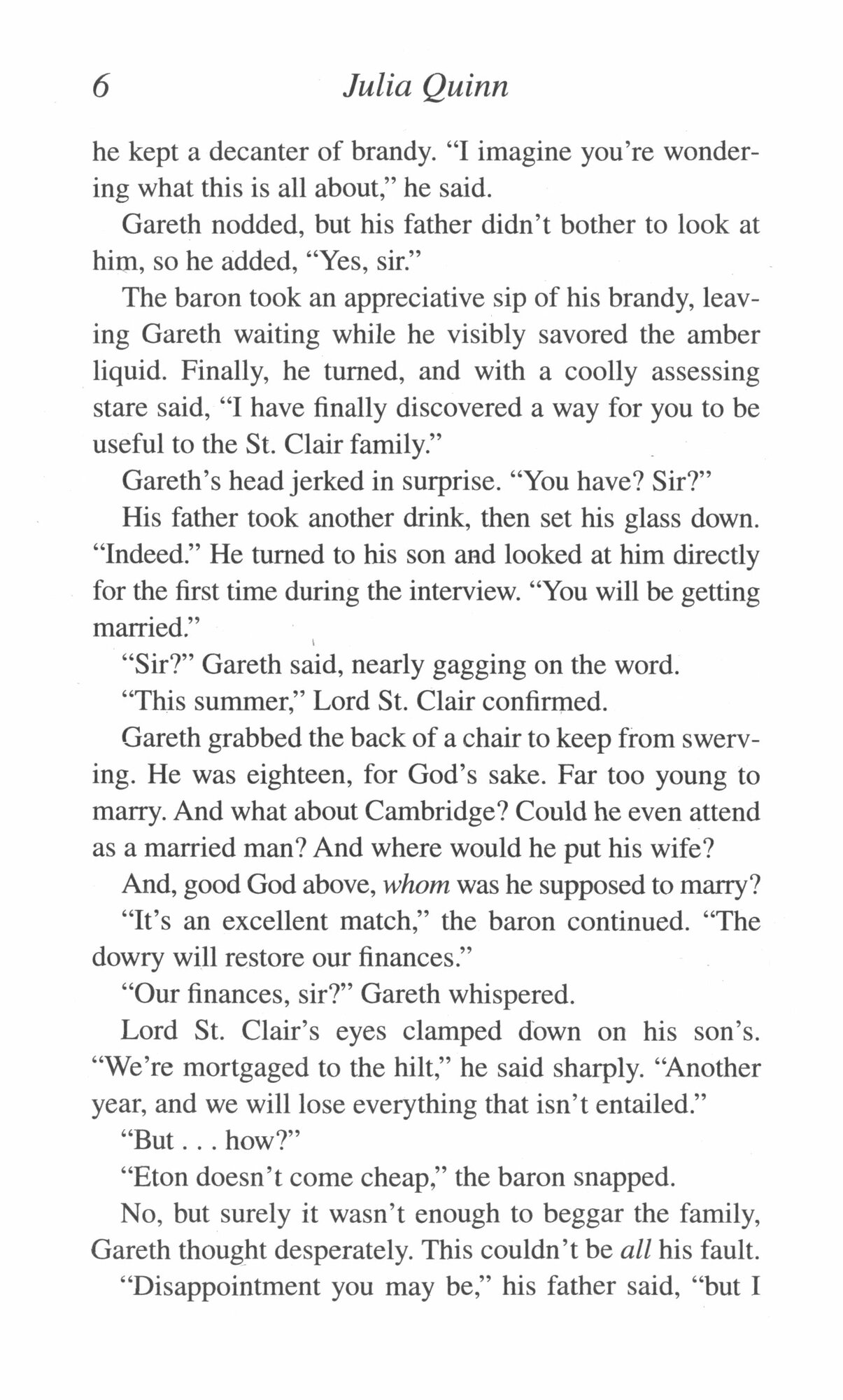 Gareth and Hyacinth cross paths at the annual - and annually discordant - Smythe-Smith musicale. To Hyacinth, Gareths every word seems a dare, and she offers to help him out with a knotty inheritance problem hes facing. However, as they delve into the mysterious St Clair history, they discover that the answers they seek lie not in the past - but in each other; and that there is nothing as simple - or as complicated - as a single, perfect kiss.