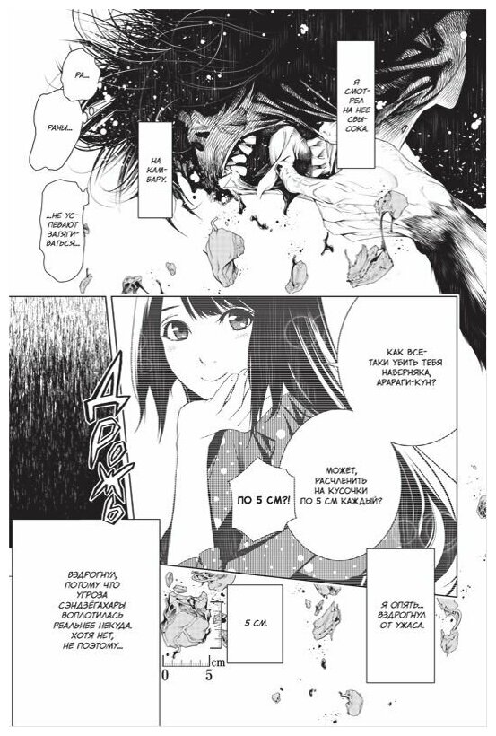 Суперобложка, том в целлофане, качество отличное. По сюжету этот том соответствует сериям 8 (середина) и 9 (середина) аниме Bakemonogatari. В манге много дополнительного материала (по сравнению с аниме). В томе завершение истории Камбару и начало рассказа про Надэко. Фигурка в комплект не входит :)