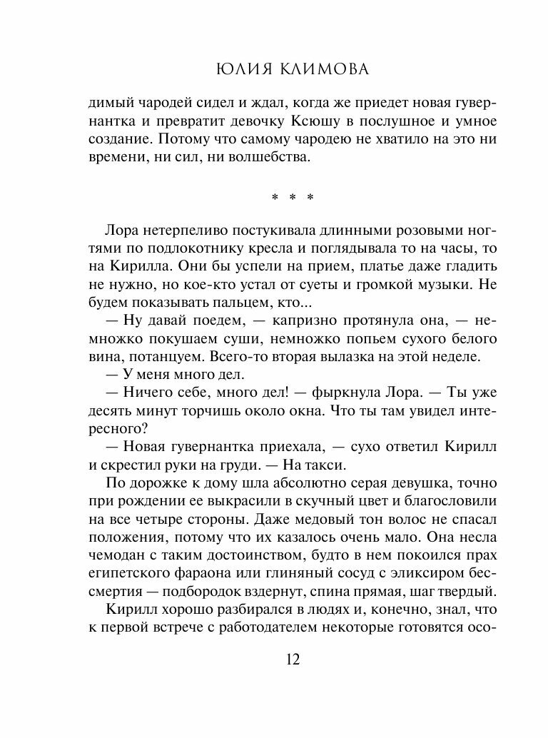 Меня с первой строчки покорила маленькая девочка, которой и понадобилась гувернантка. Она такая милая, любопытная и по доброму проказливая, что удивляешься… Всё же в подобном окружении редко растут такие светлые дети.