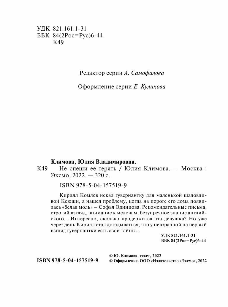 Книга: Не спеши ее терять (Климова Юлия Владимировна); ООО "Издательство "Эксмо", 2022