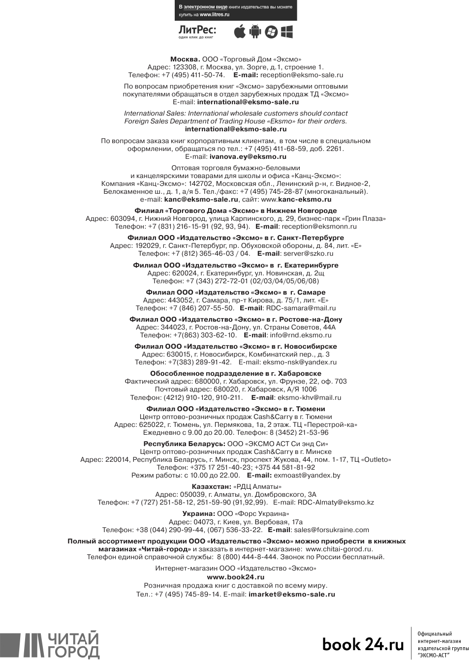 По данным нашего сервиса товар предлагался к продаже в 9 магазинах. На сегодняшний день доступен в 4 магазинах: Читай-город, book24, ЛитРес, Onliner BY. По цене от 719 р. до 1815 р., средняя цена составляет 1401 р., а самая низкая цена в магазине ЛитРес. В случае, если для вас на данный момент цена слишком высока, вы можете воспользоваться сервисом «Сообщить о снижении цены» - мы оповестим вас как только цена опустится до желаемого значения. Но будьте внимательны, используя сервис «История цены» можно спрогнозировать в какую сторону изменяется цена, возможно сейчас самое время для покупки.