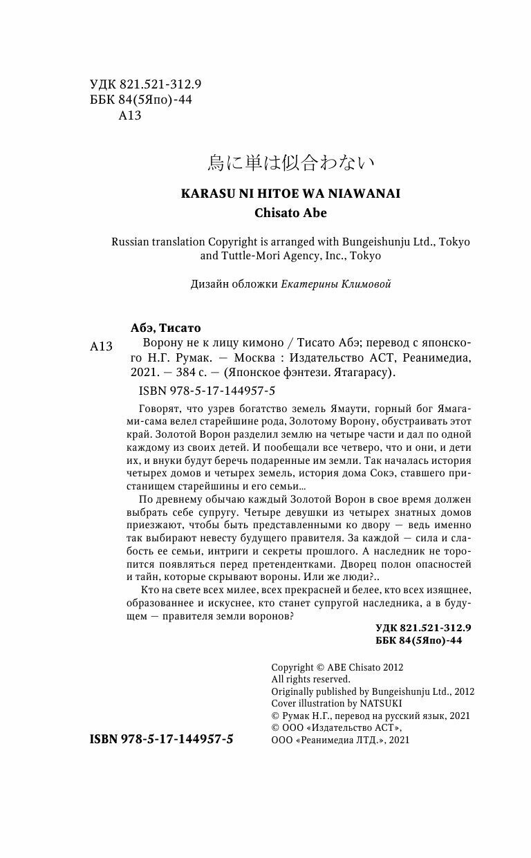 Книга: Ворону не к лицу кимоно (Тисато Абэ); Издательство АСТ, 2012