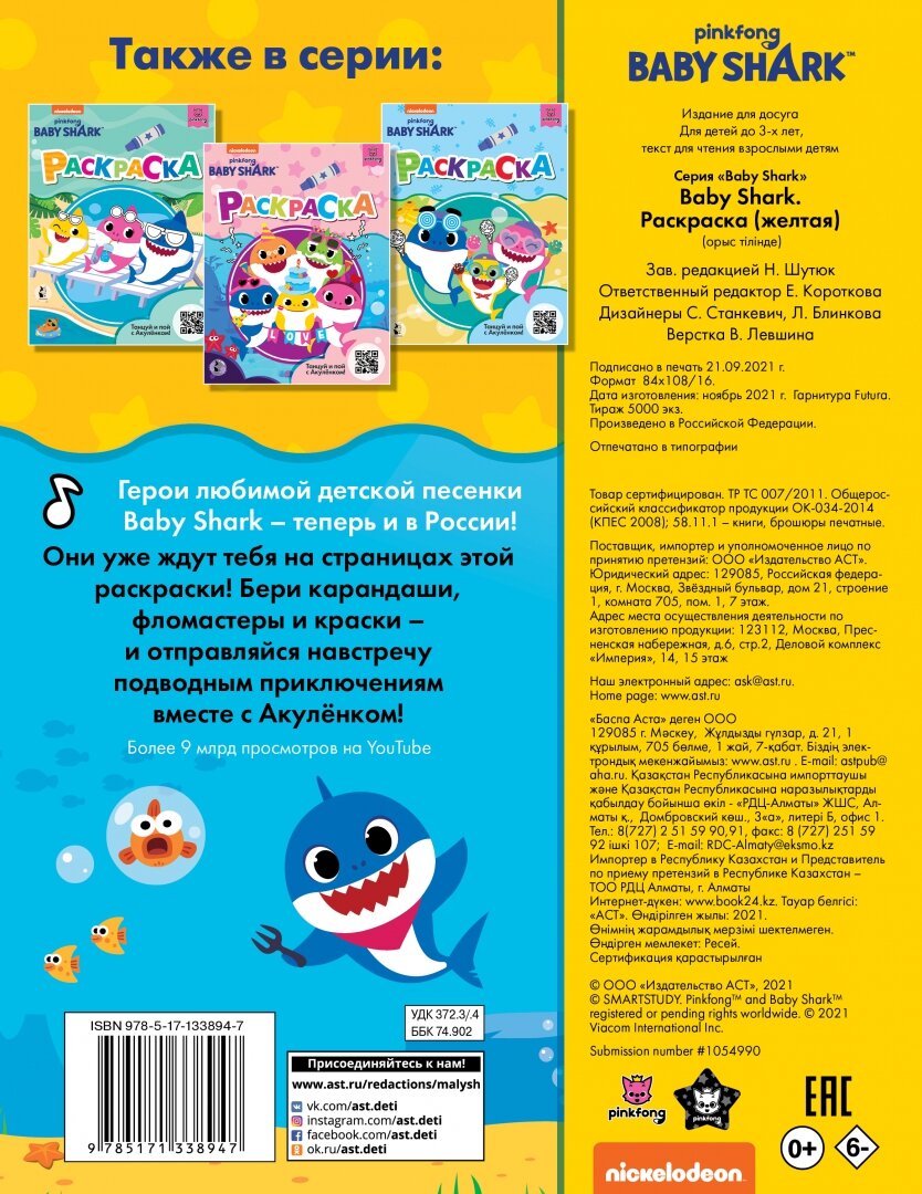Baby Shark. Раскраска (желтая) (Короткова Е.); АСТ. Малыш 0+, 2021