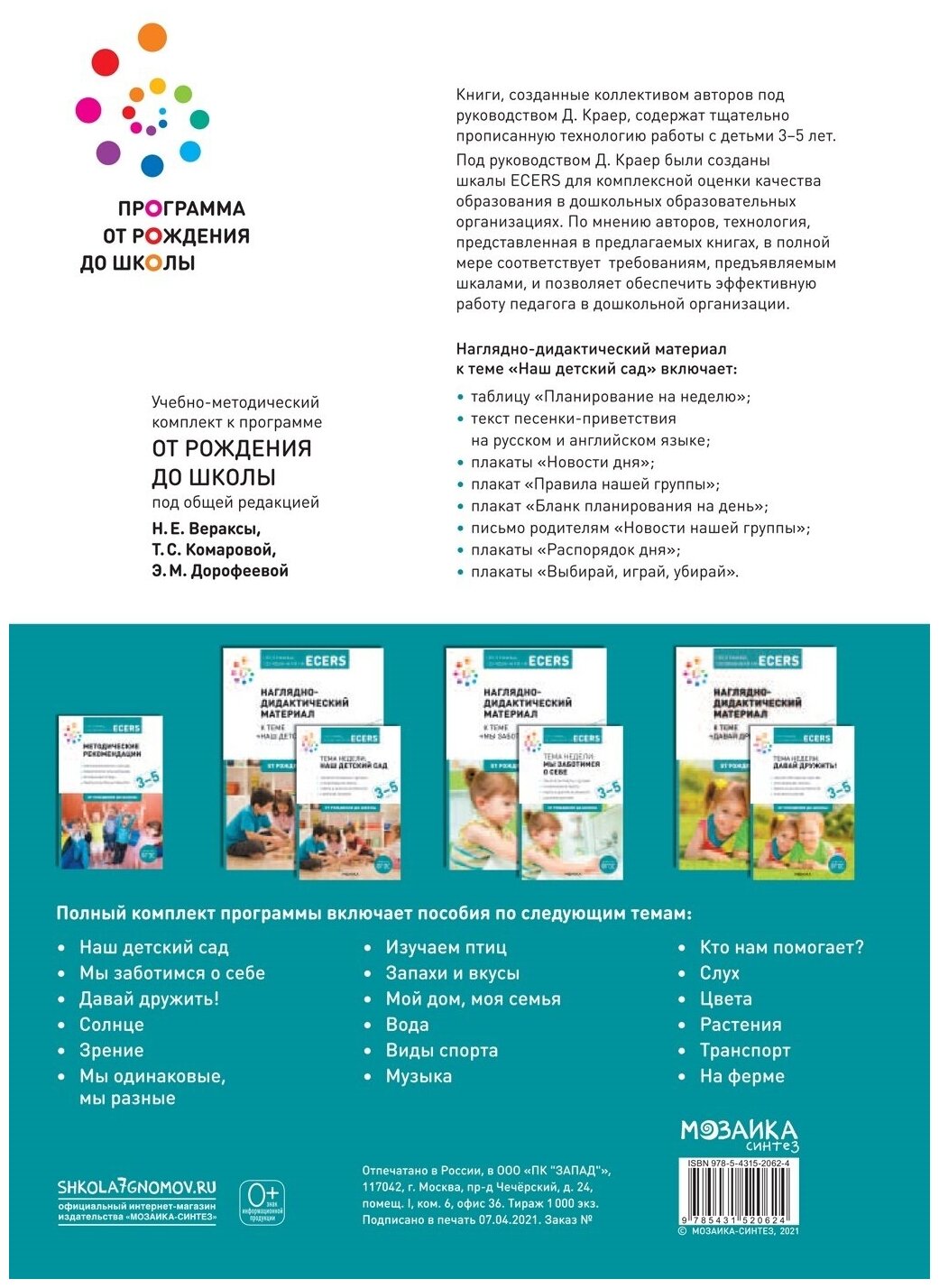 Программа основанная на ECERS. Тема «Наш детский сад». Наглядно-дидактический материал. (Дебби Краер); Мозаика-Синтез, 2022