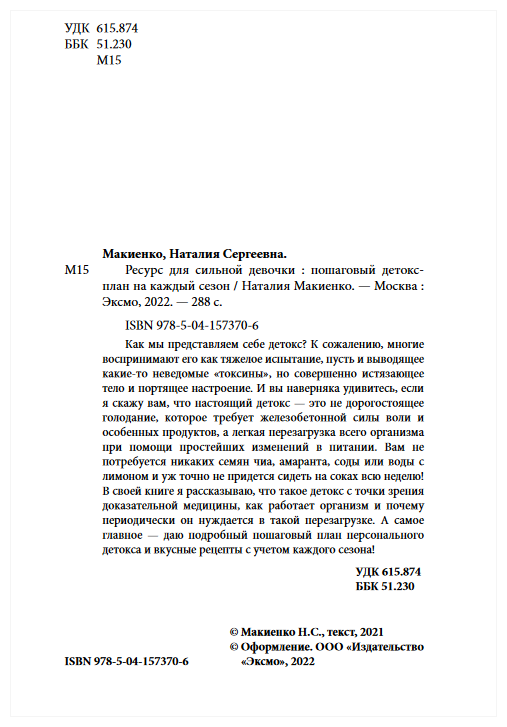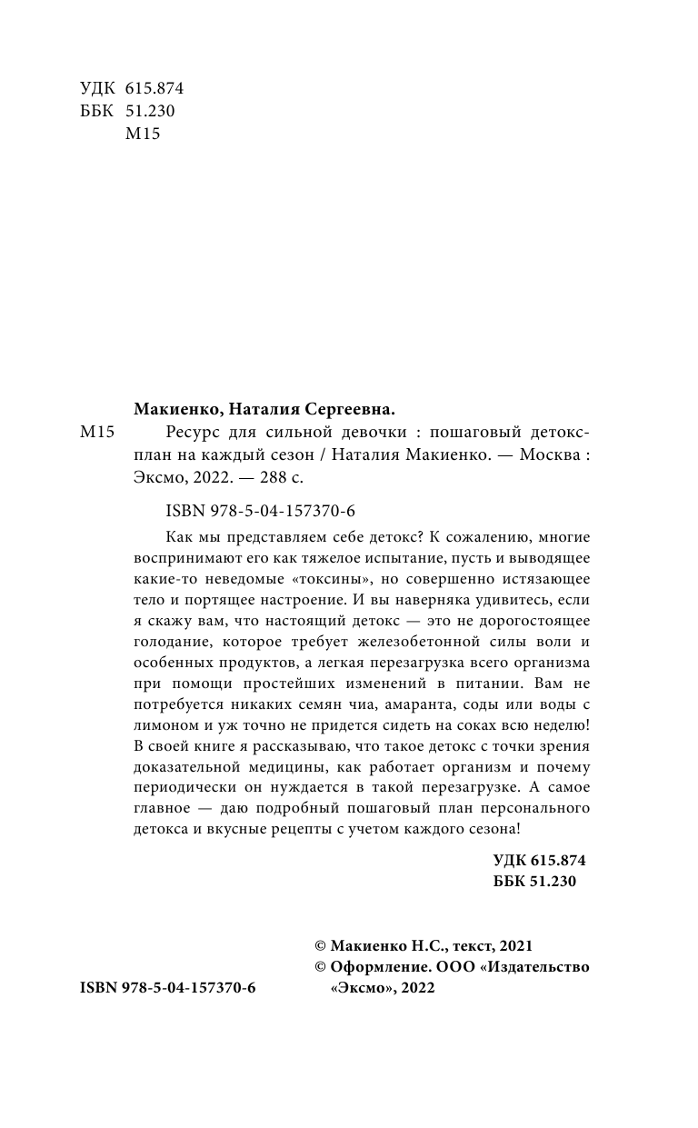 Ресурс для сильной девочки: пошаговый детокс-план на каждый сезон (Макиенко Натали); ООО "Издательство "Эксмо", 2021