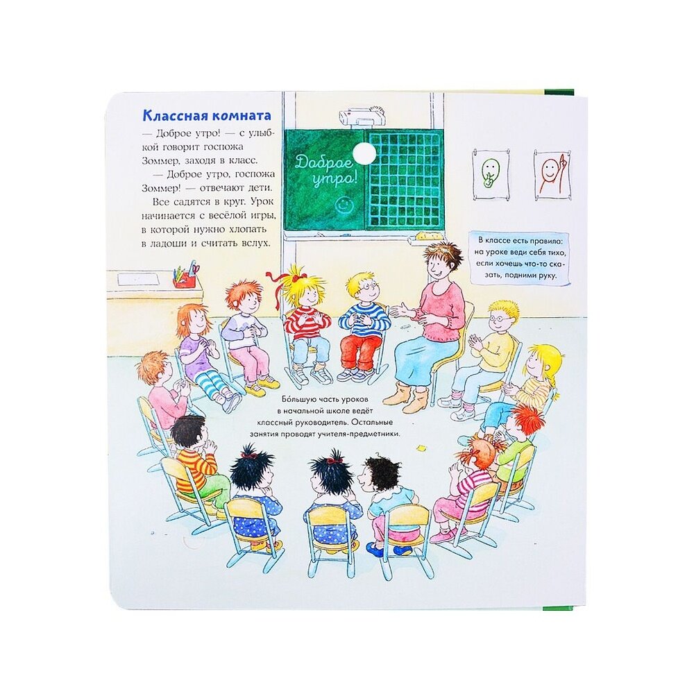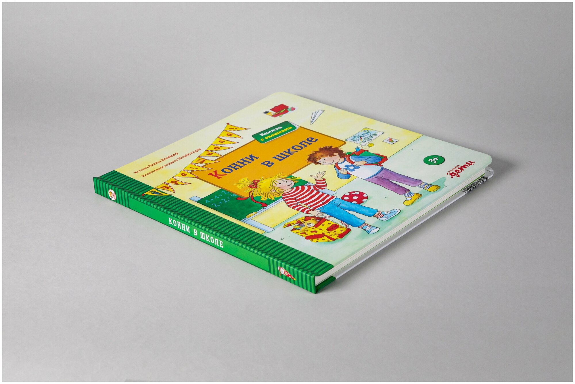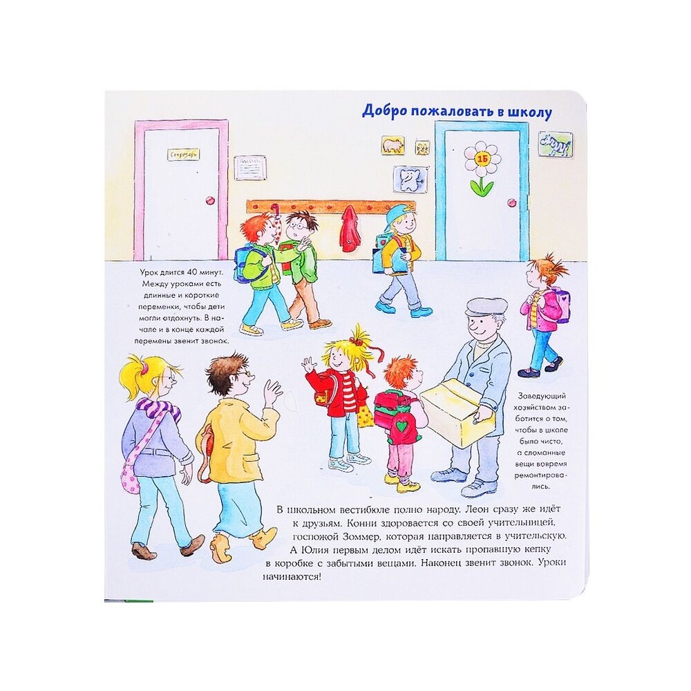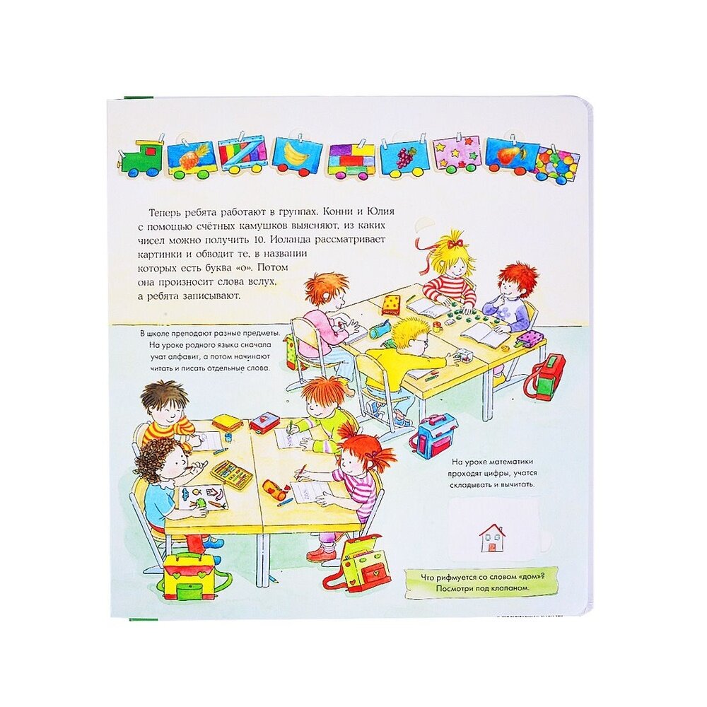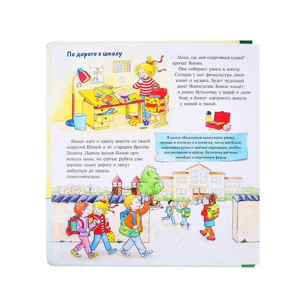 Вместе с Конни ребёнок узнает, как организован школьный день, познакомится с основными предметами и запомнит, что нужно обязательно взять с собой на уроки.