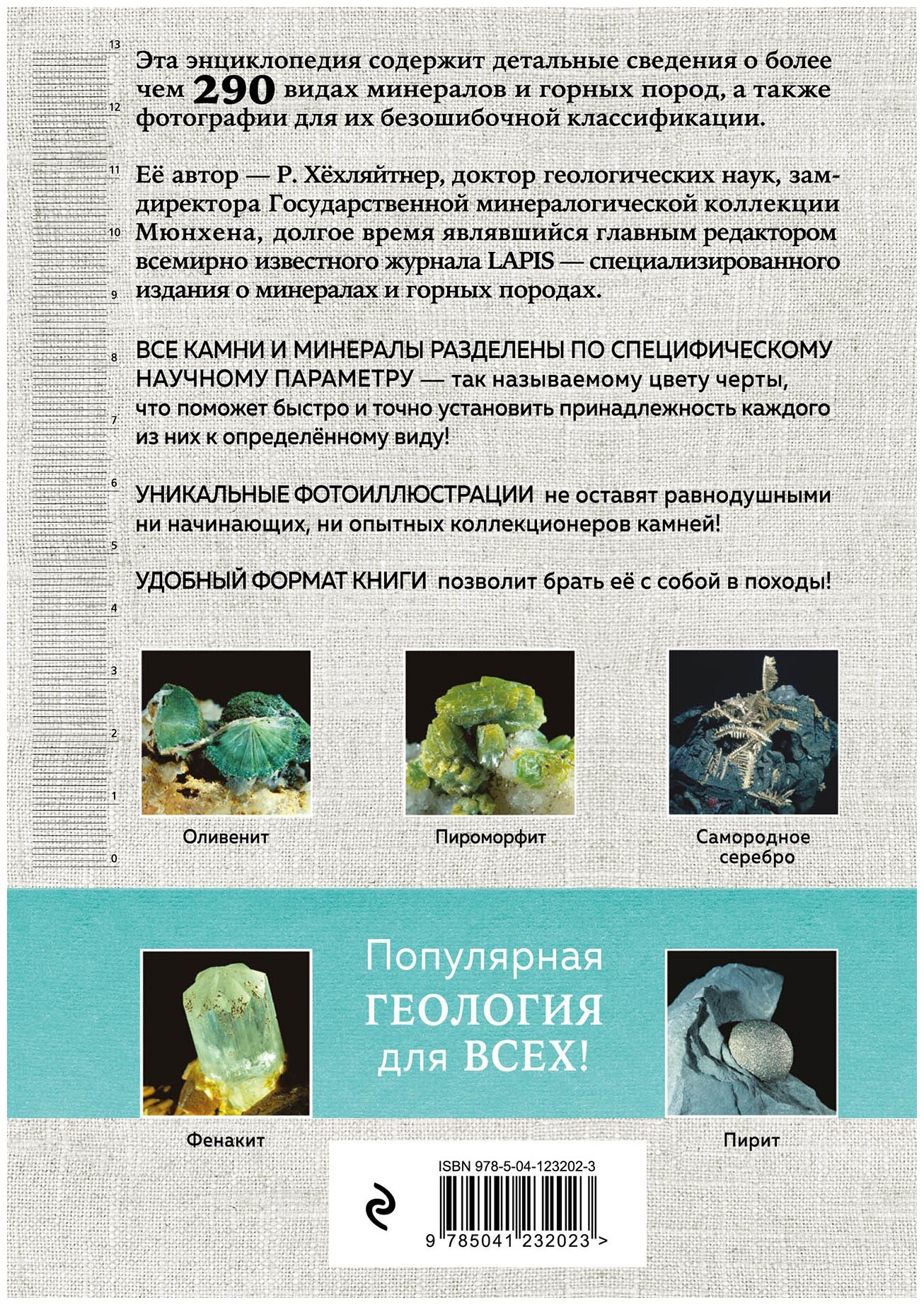 Этот иллюстрированный справочник очень удобно брать с собой в походы. Книга содержит подробную информацию о более чем 290 видах минералов и горных пород, детальные фотоснимки каждого из них, а все камни в ней разделены по специфическому геологическому параметру — так называемому цвету черты. Всё это в комплексе позволит быстро и точно выяснить принадлежность любого минерала к определённому виду!