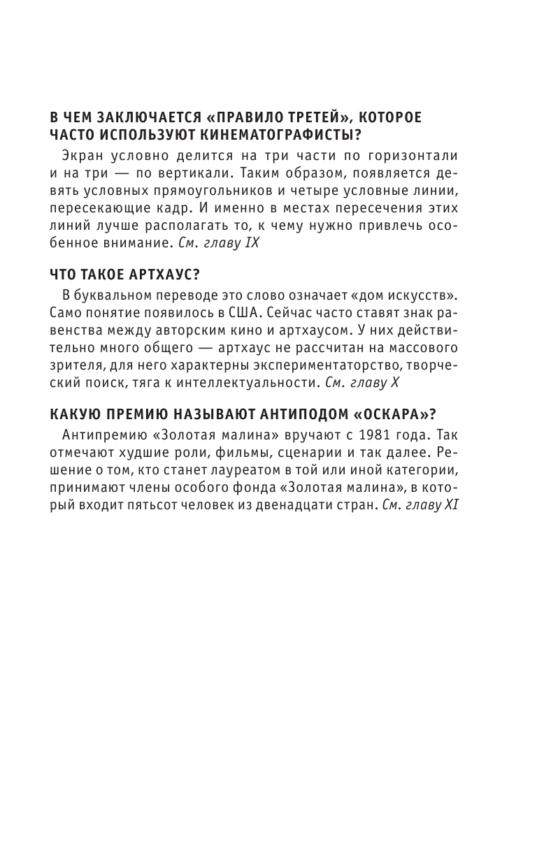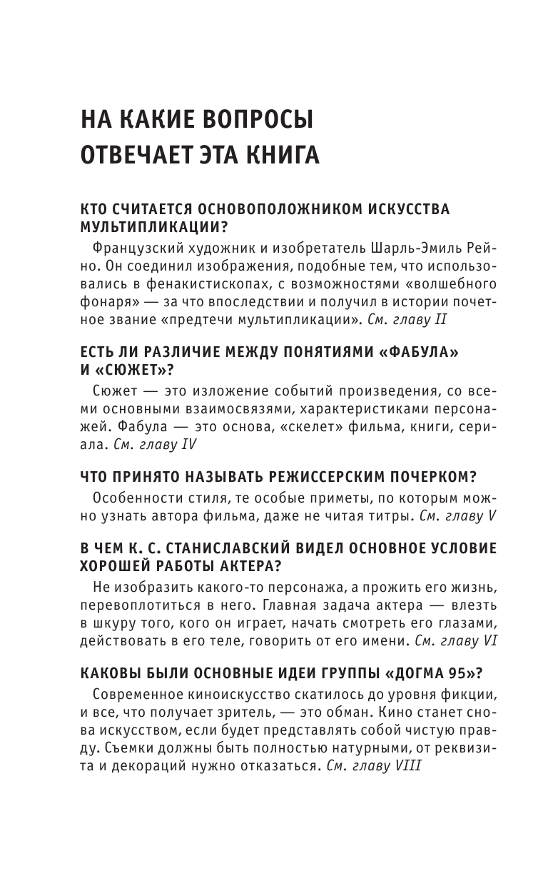 Книга направлена на понимание у простого читателя о том как работает индустрия по сьемке кино. В книге просто указано как создаётся киноленты от создания сценария до разбора фильма на цитаты. Книга также поможет понять работу кинокритиков. Эти знания действительно не будут лишними. Книга обязательно найдет свою аудиторию и займет достойное место в шкафу.