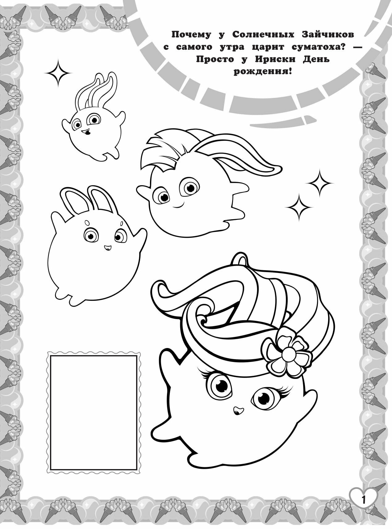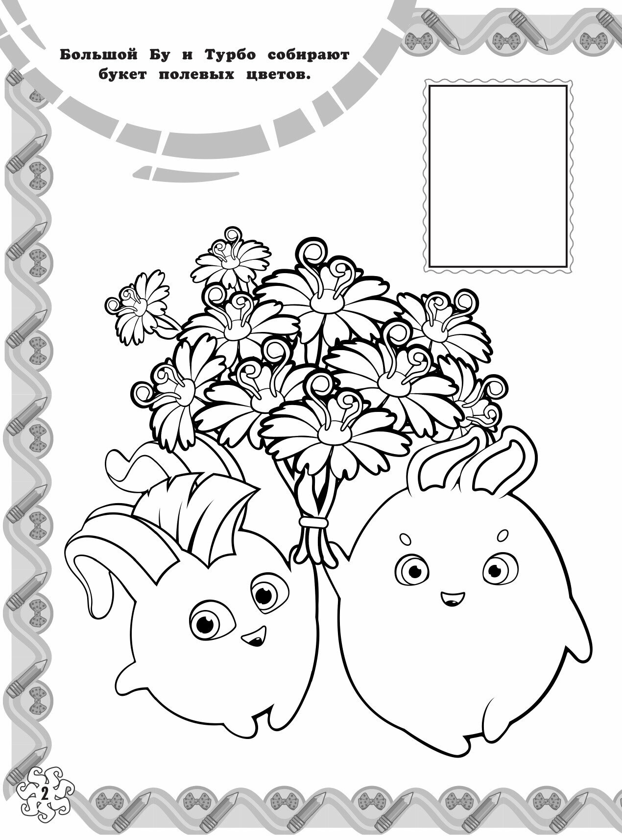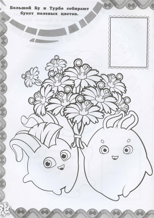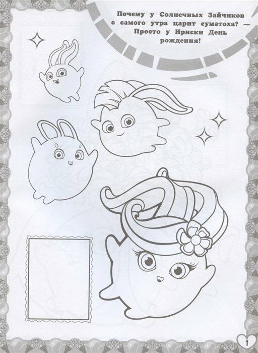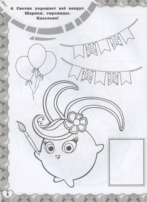 У Солнечных Зайчиков появился новый друг — высокотехнологичный робот С-Марти! Теперь веселья станет ещё больше! Наклей изображения любимых героев на страницы и раскрась персонажей по образцу.