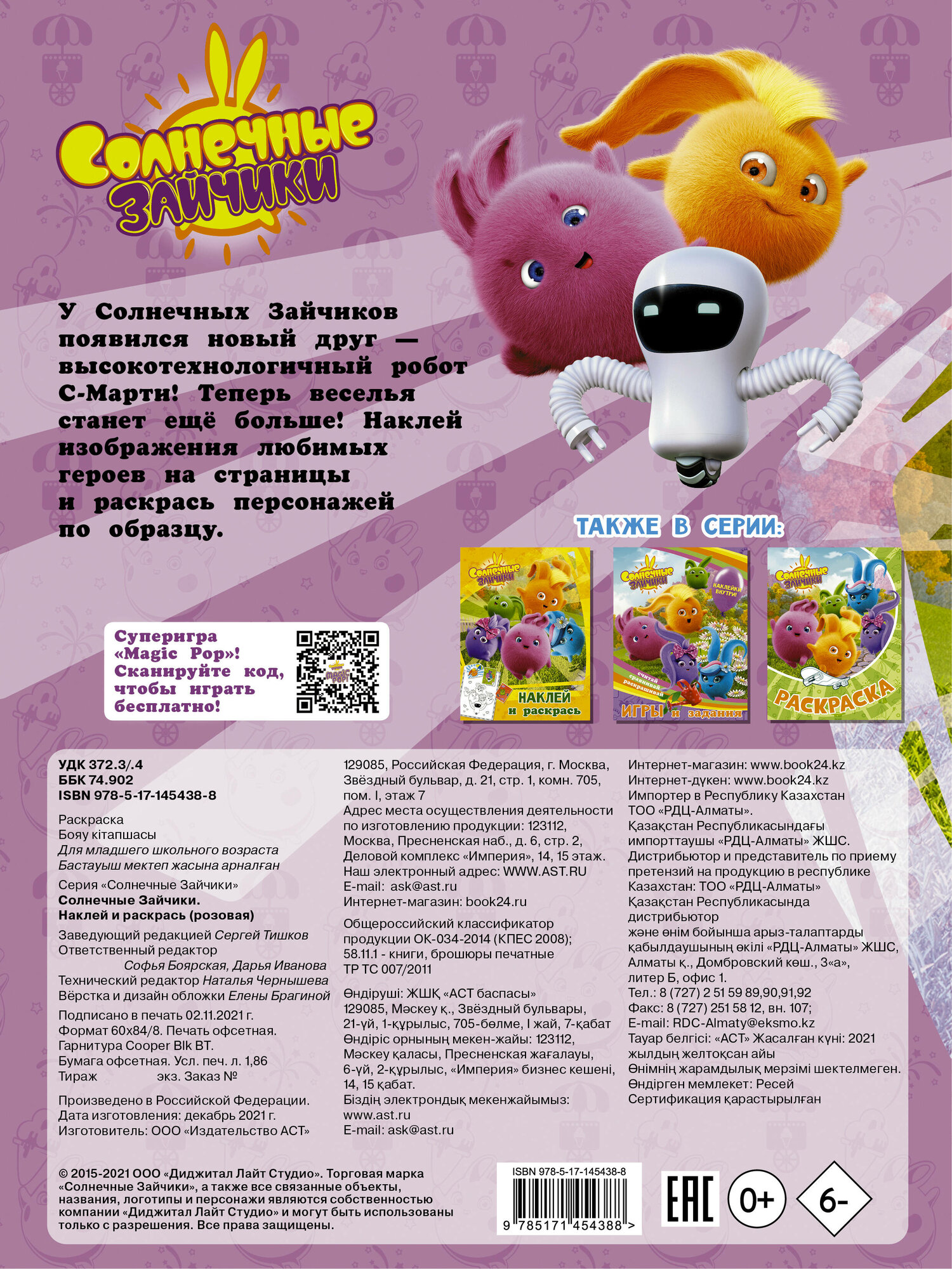Солнечные Зайчики. Наклей и раскрась (розовая) (Коллектив авторов); ИЗДАТЕЛЬСТВО "АСТ", 2021