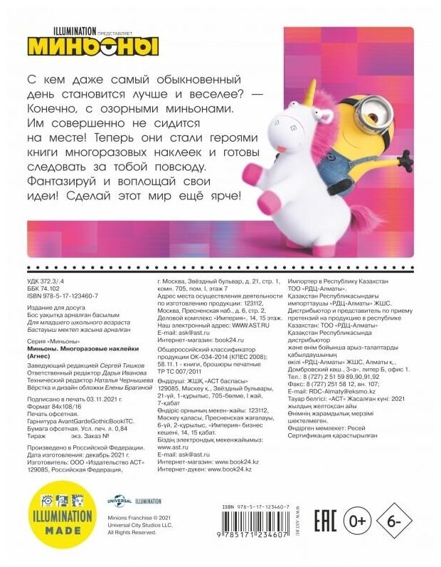 Миньоны. Многоразовые наклейки (Агнес) (Иванова Д. (ред.)); ИЗДАТЕЛЬСТВО "АСТ", 2021