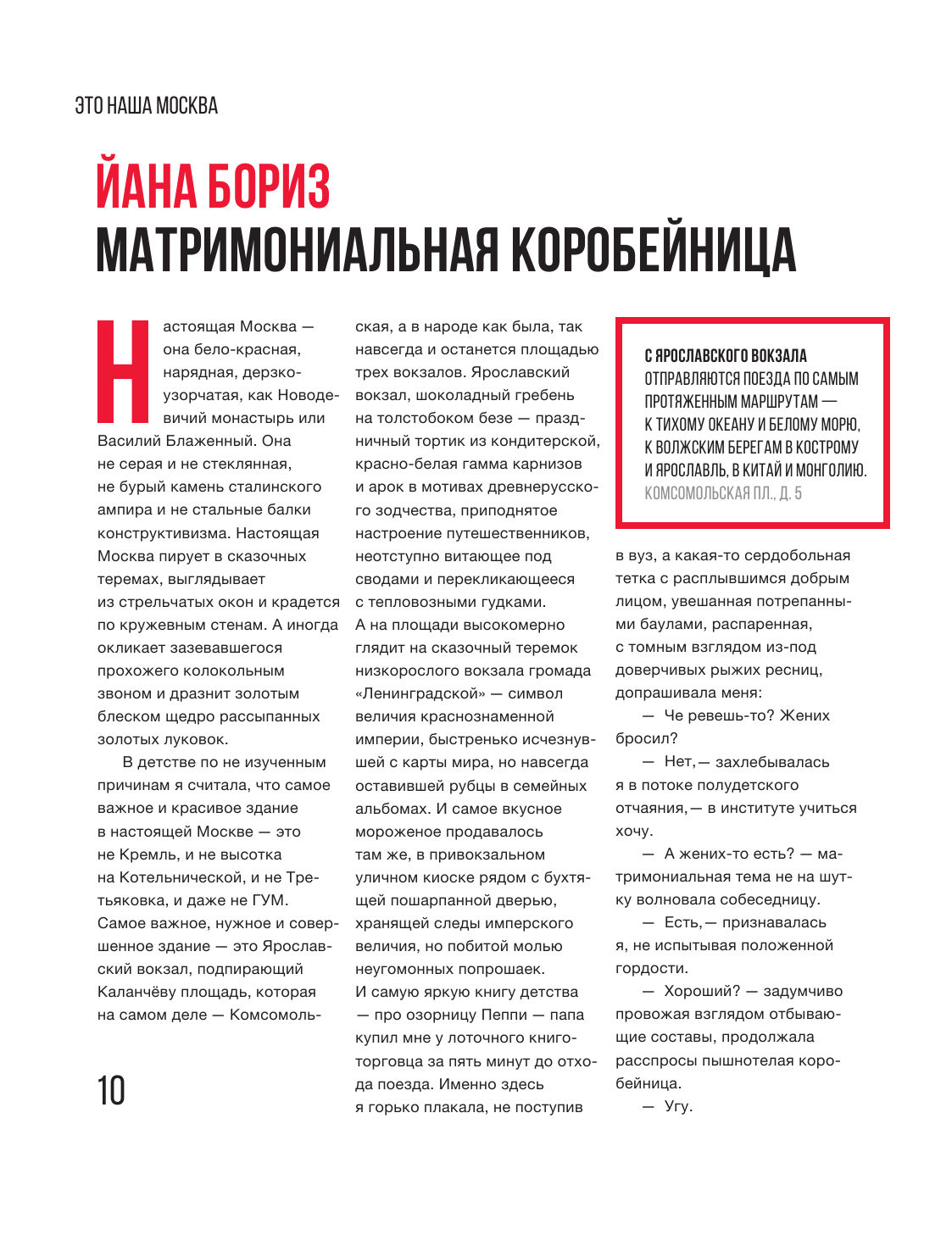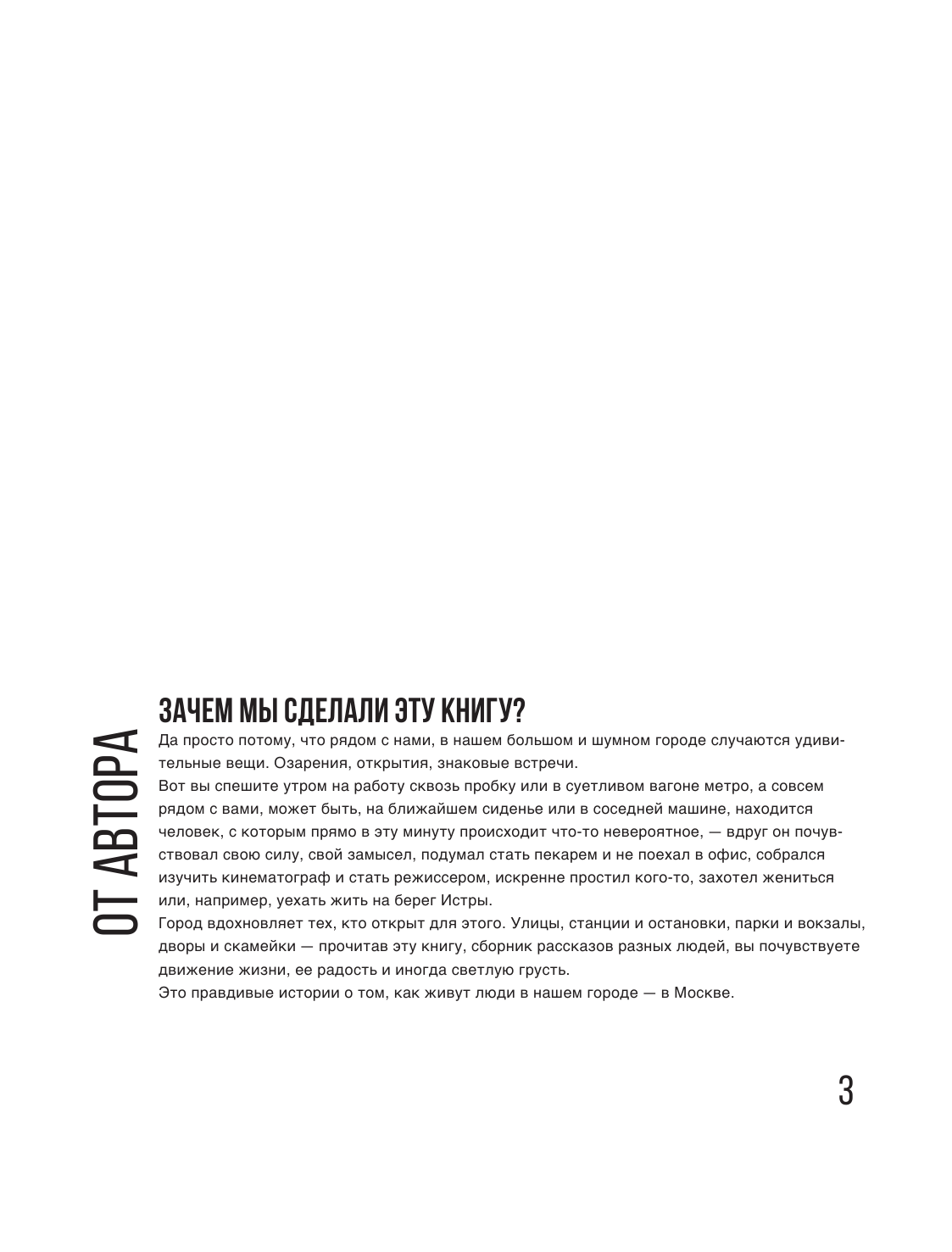 Каждая история — это часть пазла, собрав который вы сможете увидеть душу города, почувствовать его настоящий ритм. Сможете пройтись маршрутами наших героев и открыть для себя новые места. И в очередной раз влюбиться в Москву.