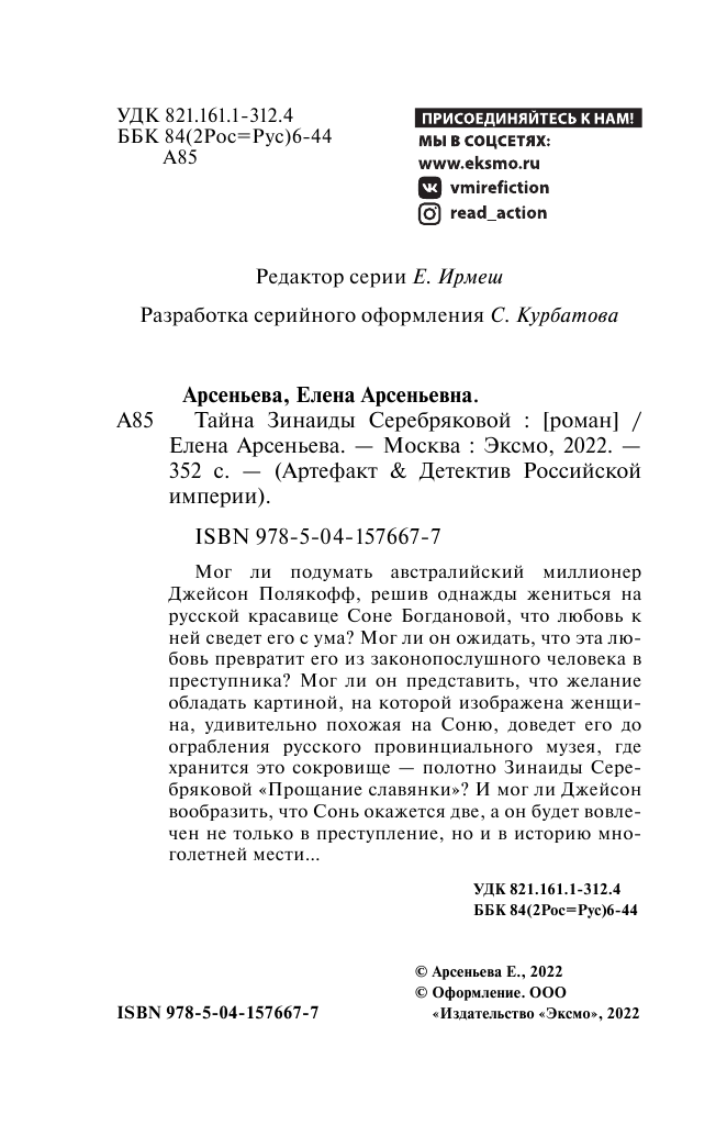 Тайна Зинаиды Серебряковой (Арсеньева Елена Арсеньевна); Эксмо, 2022