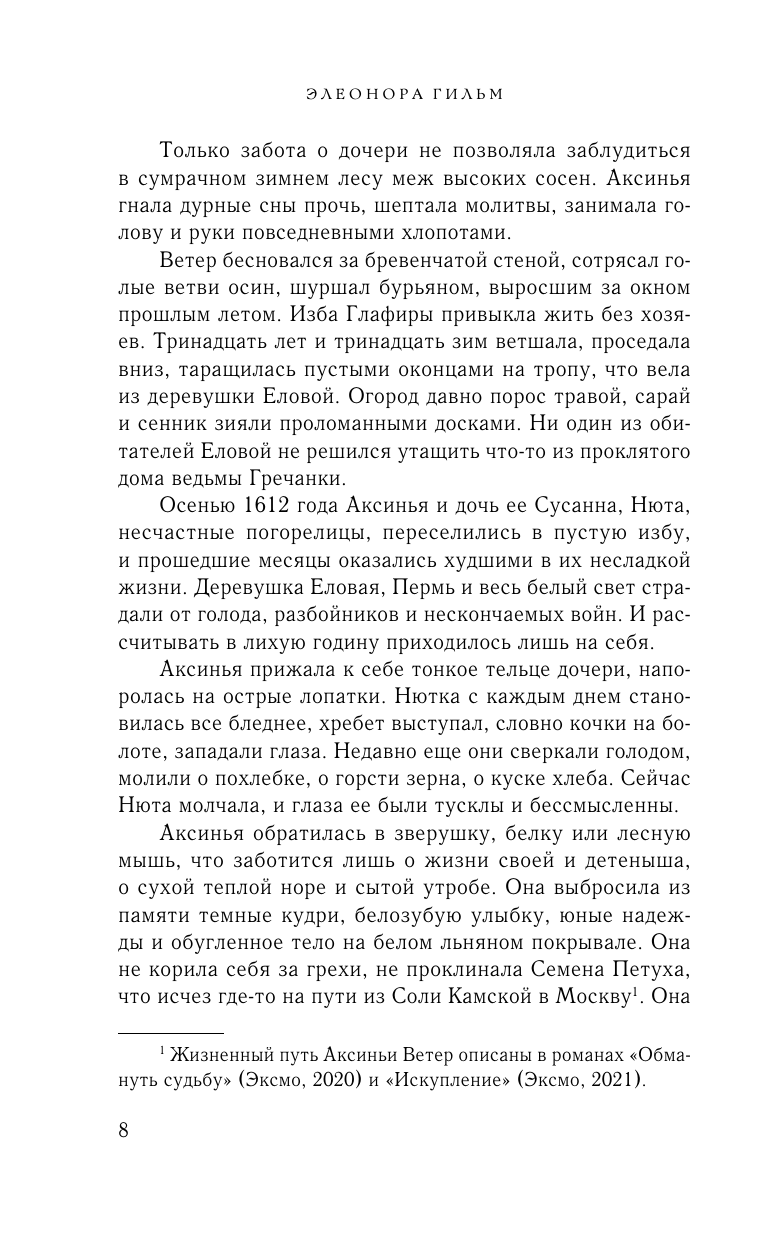 Третья книга женской саги действительно оказалась немного легче для меня. Нет, я переживала вместе с Аксиньей все испытания и тяготы России XVII столетия, времена были очень непростые. Я болела за отношения между матерью и подрастающей Сусанной. Злилась на глупость людскую, на упрямство гордячки Аксиньи. Я плакала вместе с ней над сожжёнными лекарственными травами и замерзала в лютую стужу, бредя по сугробам в поисках дочери.