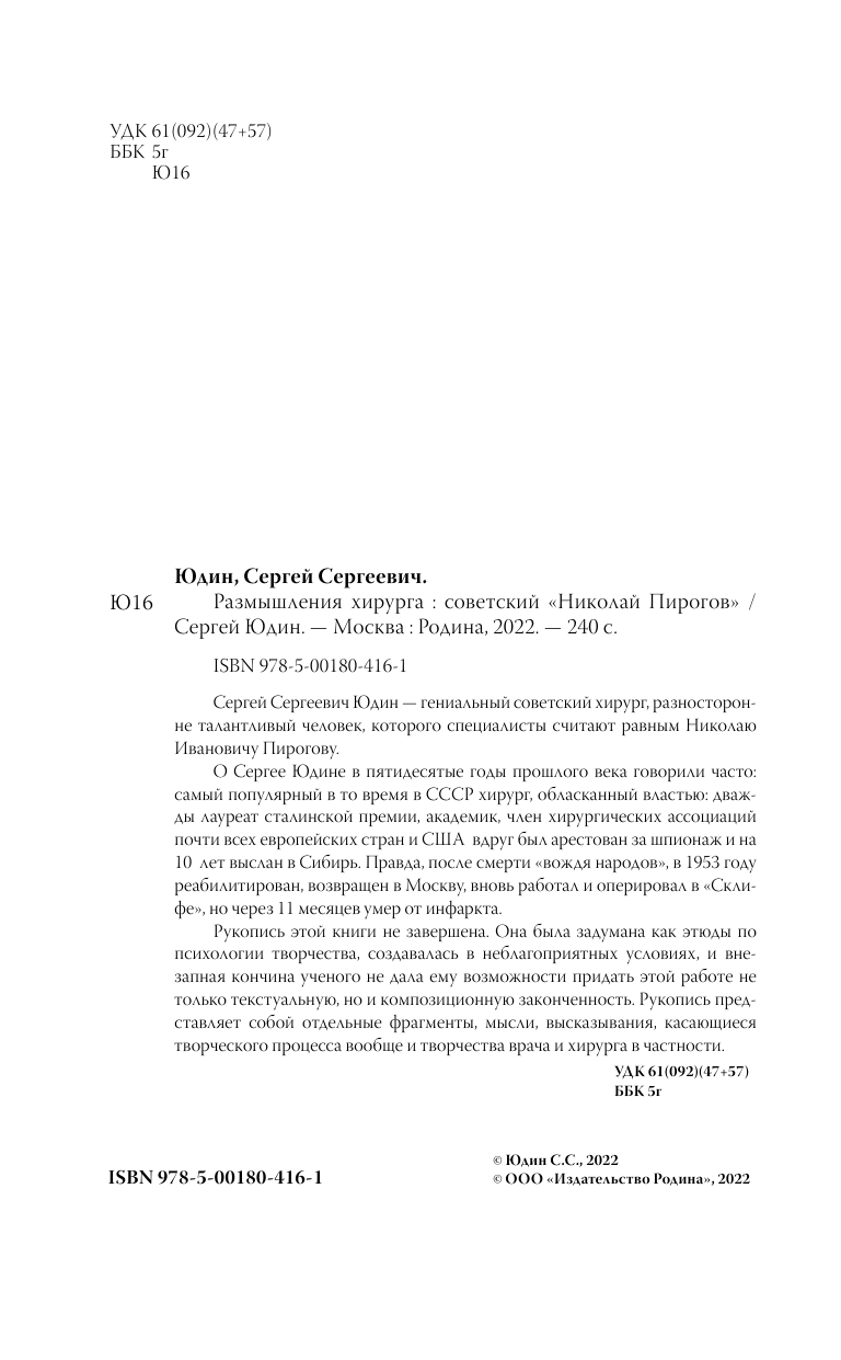 Размышления хирурга. Советский «Николай Пирогов» (Сергей Юдин); Алисторус, 2021