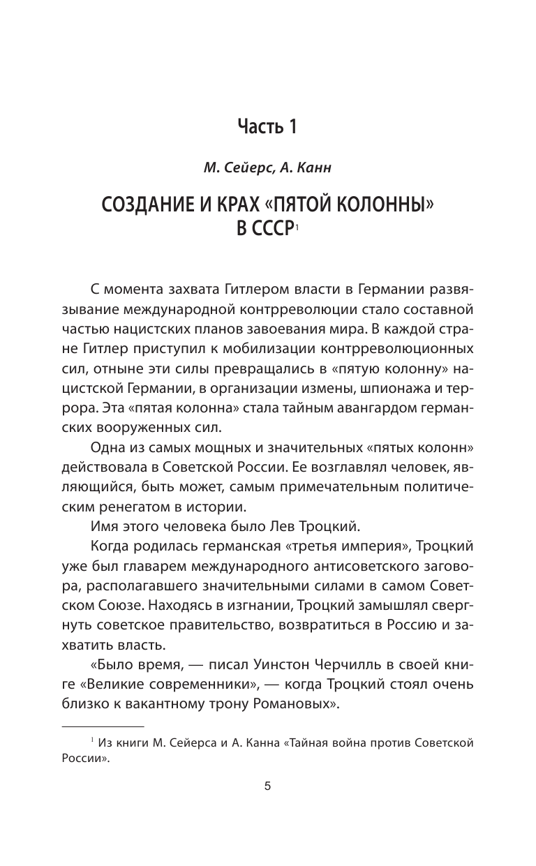 Уже первая страница книги говорит о ее бредовости. Создателем пятой колонны в лучших сталинских традициях именуют Льва Троцкого, одного из лидеров большевистского переворота и создателя Красной Армии. Тем более с его высылкой и снятием лояльных к Троцкому людей как из армии, так и из правительства. Эта опасность была ликвидирована.