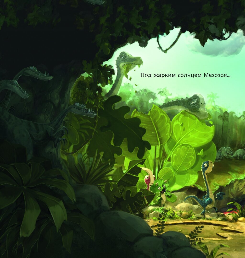 У меня ребёнок просто влюбился в динозавров после прочтения этой книги. И есть за что. Книга очень красивая, яркая, рисунки насыщенные, краски сочные. На развороте не так много текста, в основном книга - это одна большая иллюстрация. Тем не менее сюжет есть, он о дружбе, взаимопомощи. Динозавры очень мило изображены, совсем не страшные, но если ребёнок встретит их в другой книге - вполне уже сможет узнать и назвать.