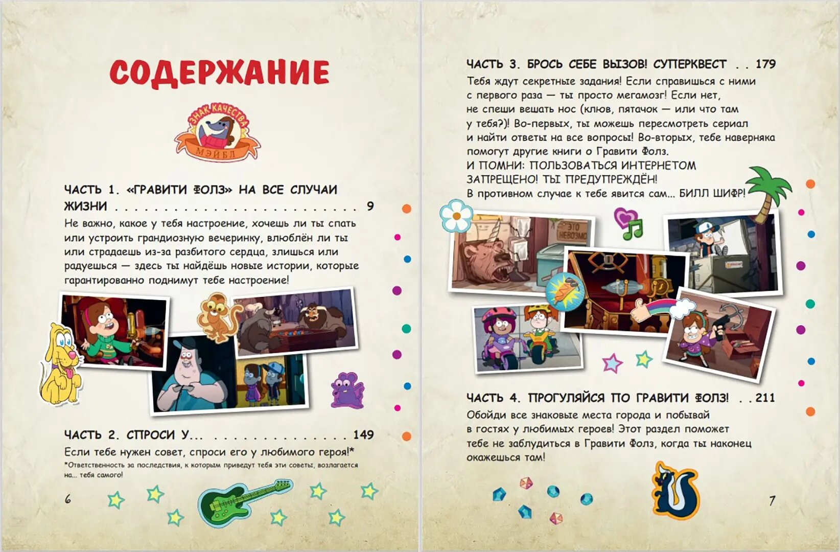Купила ребенку на день рождения, он у меня фанат Гравити Фоллз. Книга отлично подходит на подарок, она напечатана на хорошей бумаге, ярко оформлена, с массой иллюстраций и необычной подачей материала: есть не только истории, но и тесты, разные игровые задания, что-то вроде головоломок. Несколько вечеров ребенок от нее не отрывался, я считаю, это успех))
