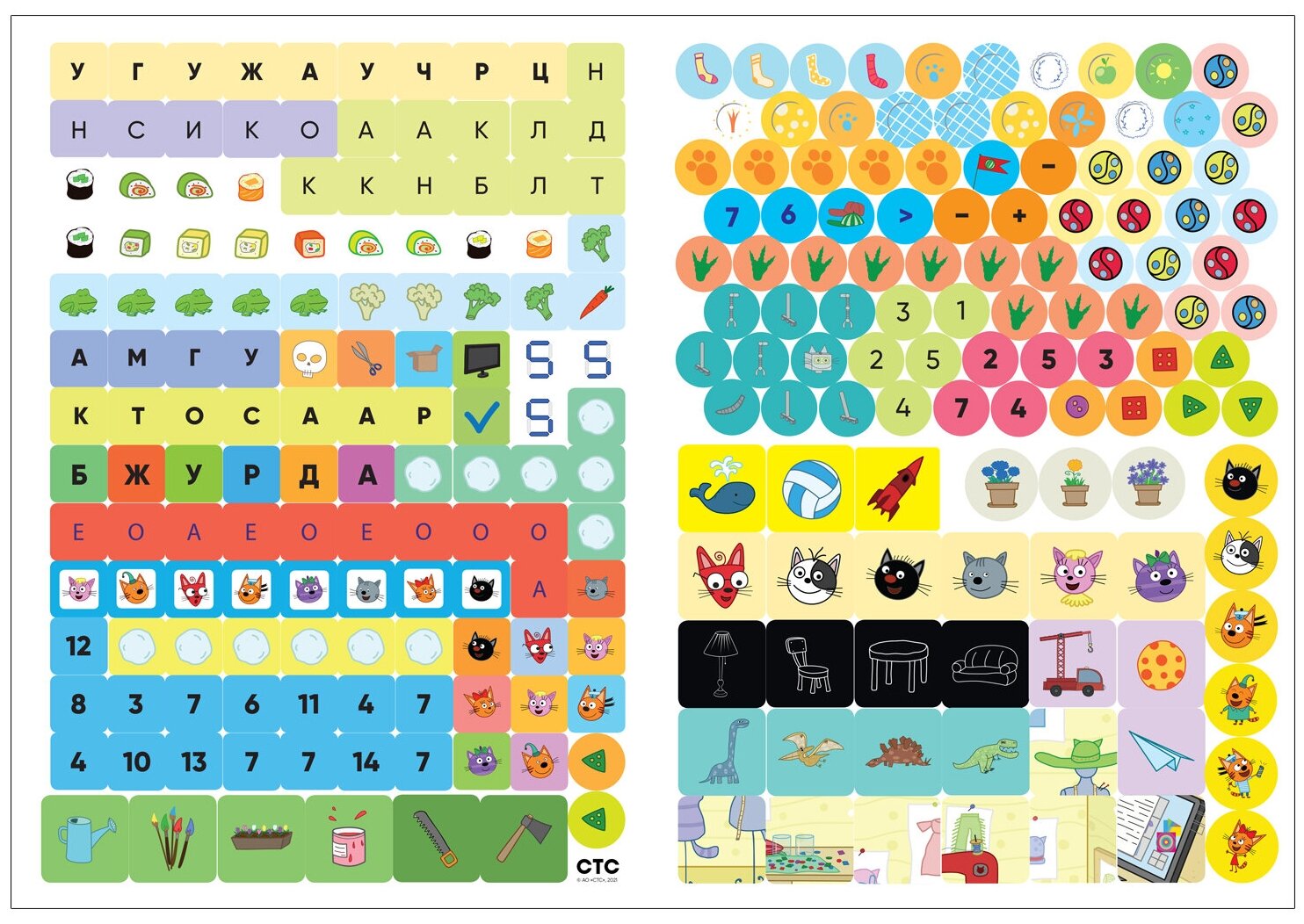Наипрекраснейшие наклейки по крутому мультфильму три кота. Недавно купила их для дочери, думала, что просто наклейки и все, но оказался целый набор загадок для ребенка. Их нужно разгадывать с помощью наклеек, что очень интересно и увлекательно. Любимые герои - Карамелька, Коржик и Компот поднимали настроение дочке и мотивировали ее к деятельности. Цена приятно удивила.