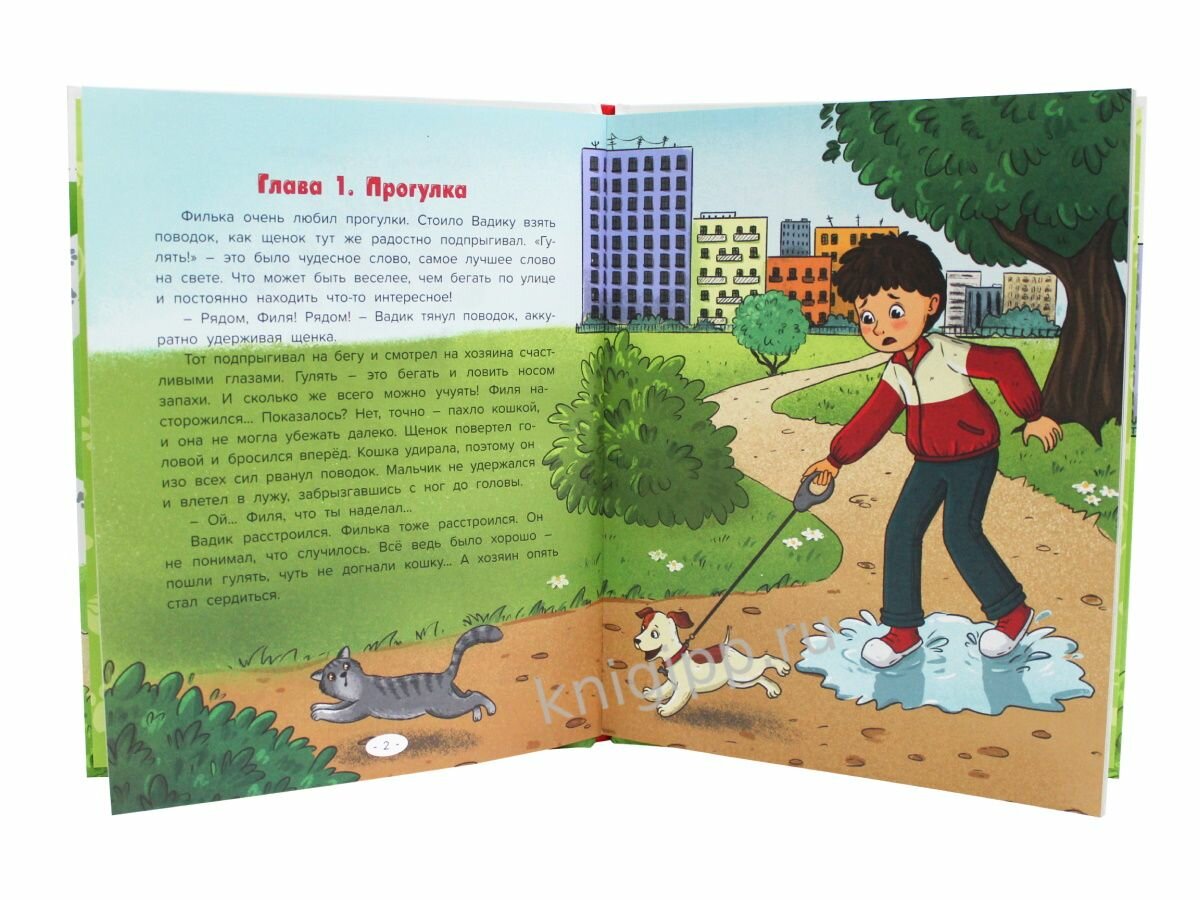 Озорной щенок Филя совершенно не умеет себя вести: на прогулке, в гостях, в ветеринарной клинике – хозяину постоянно приходится за него краснеть. Эта добрая история расскажет, как научить четверолапого друга хорошим манерам и слушать старших.