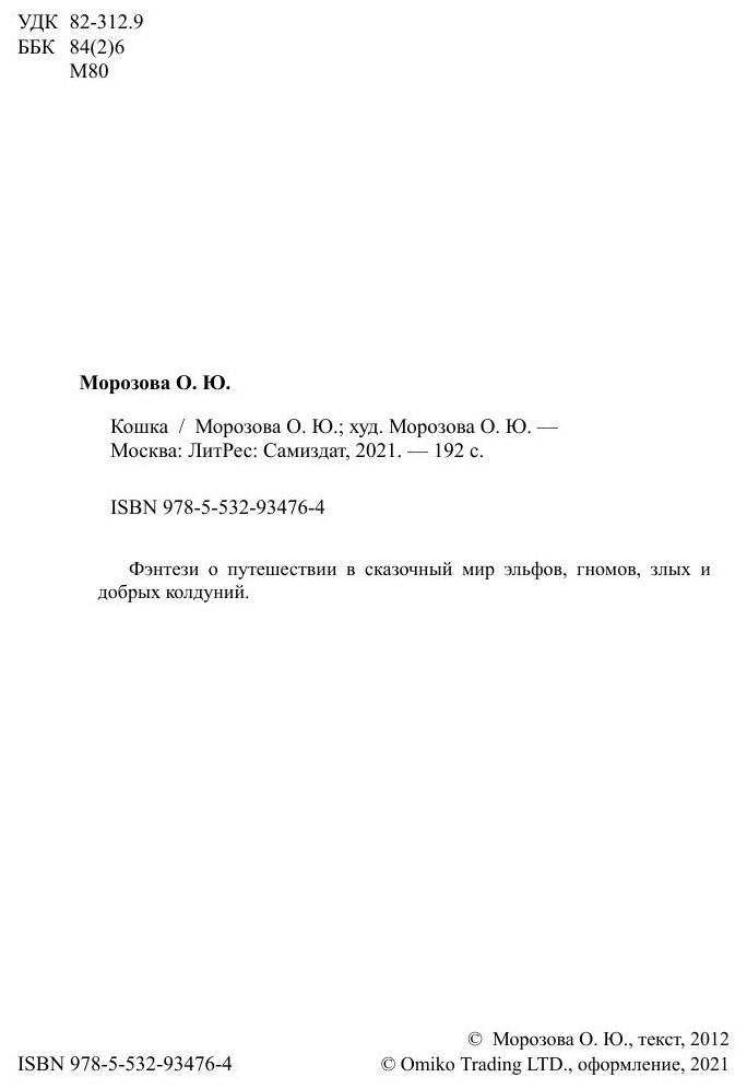 Книга: Кошка (Ольга Юрьевна Морозова); Автор, 2012