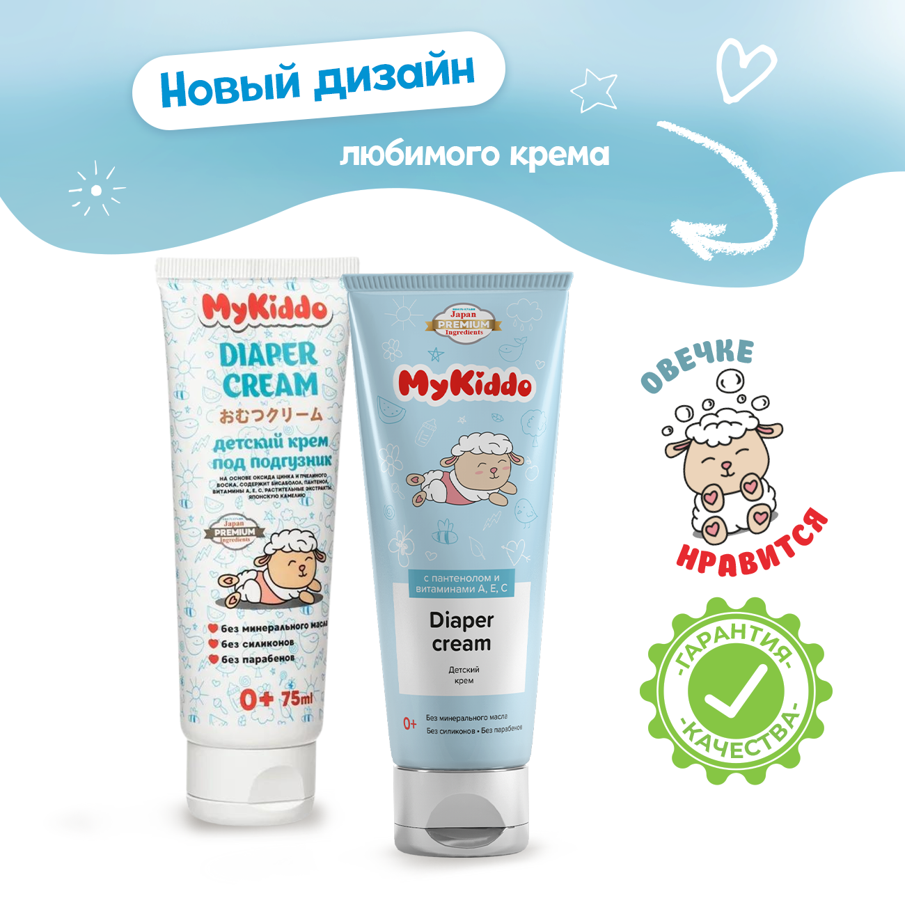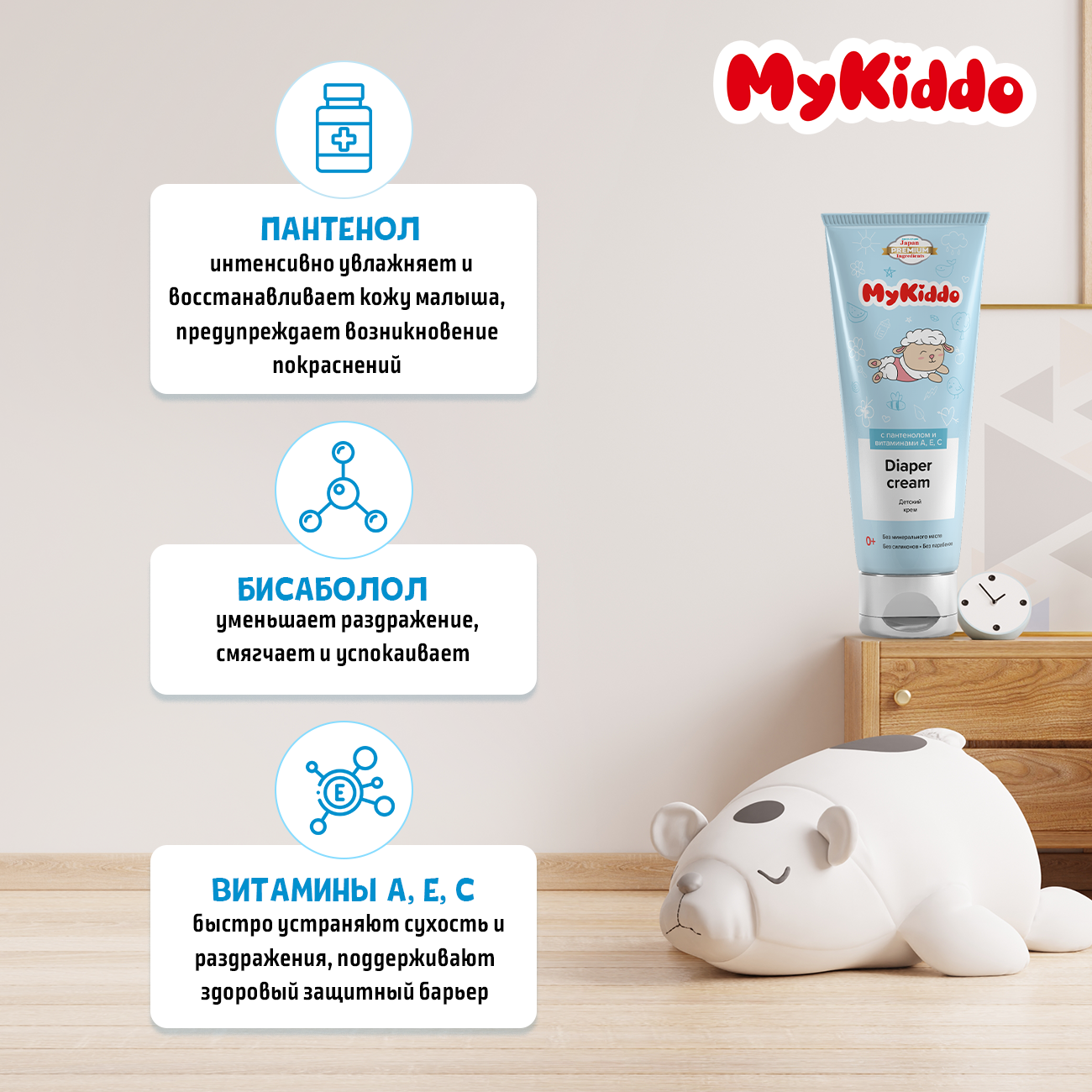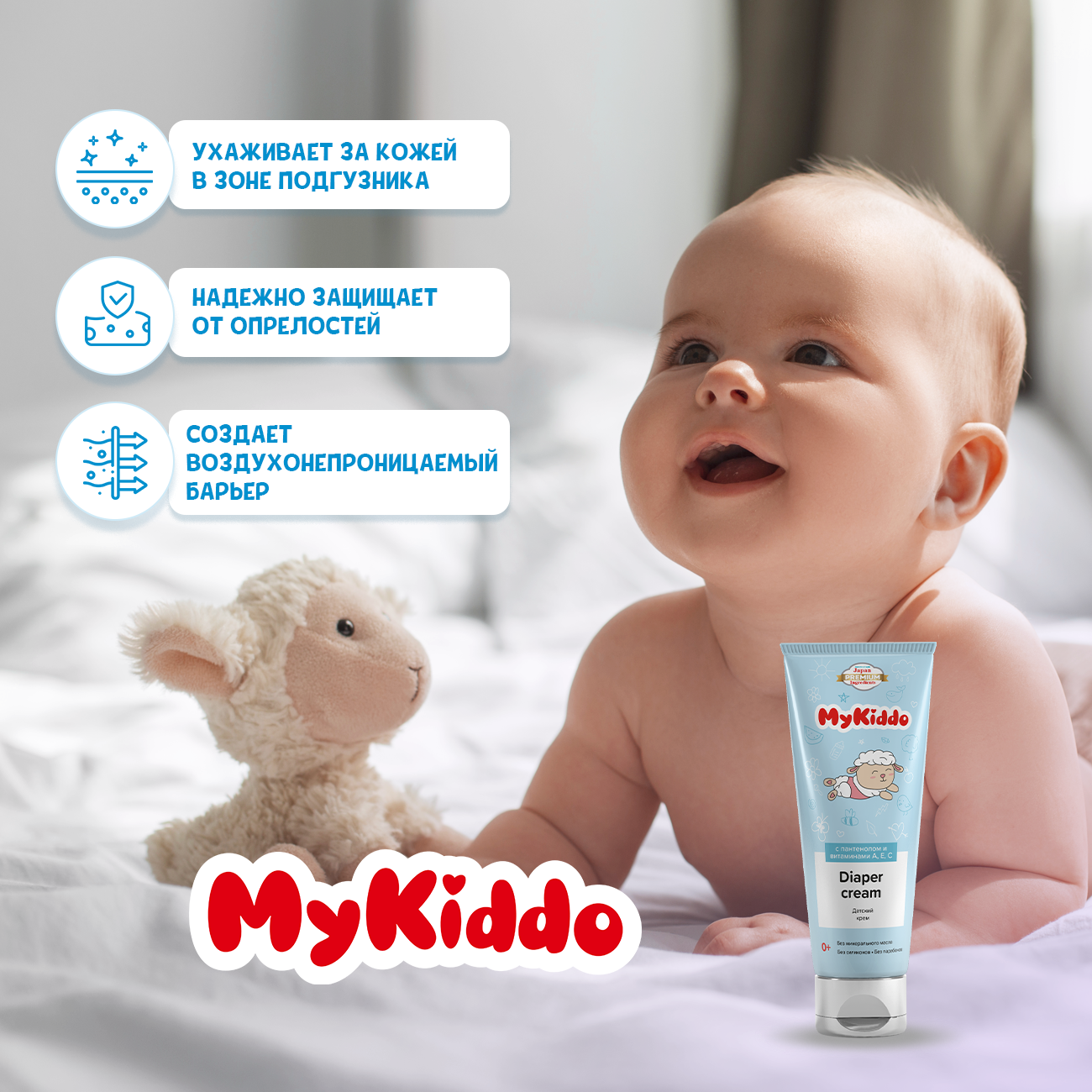 Крем под подгузник на основе окс. цинка и пчел. воска бисаболол пантенол вит. АЕС растит. экст-ы MyKiddo 75мл ООО УНИК КОСМЕТИК (1252695)