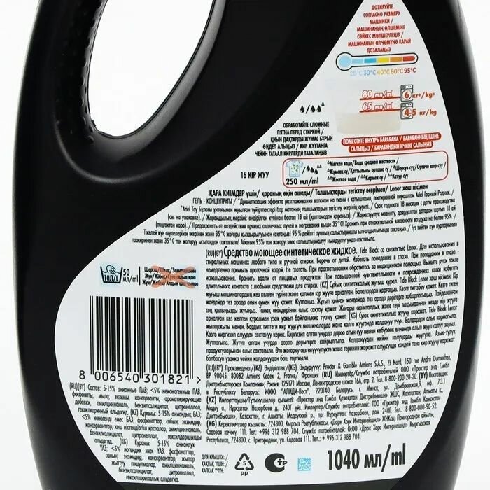 Средство моющее Tide Black жидкое cо свежестью Lenor 1.04л P&G Manufacturing Berlin