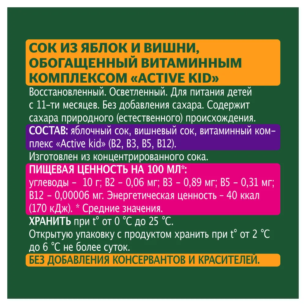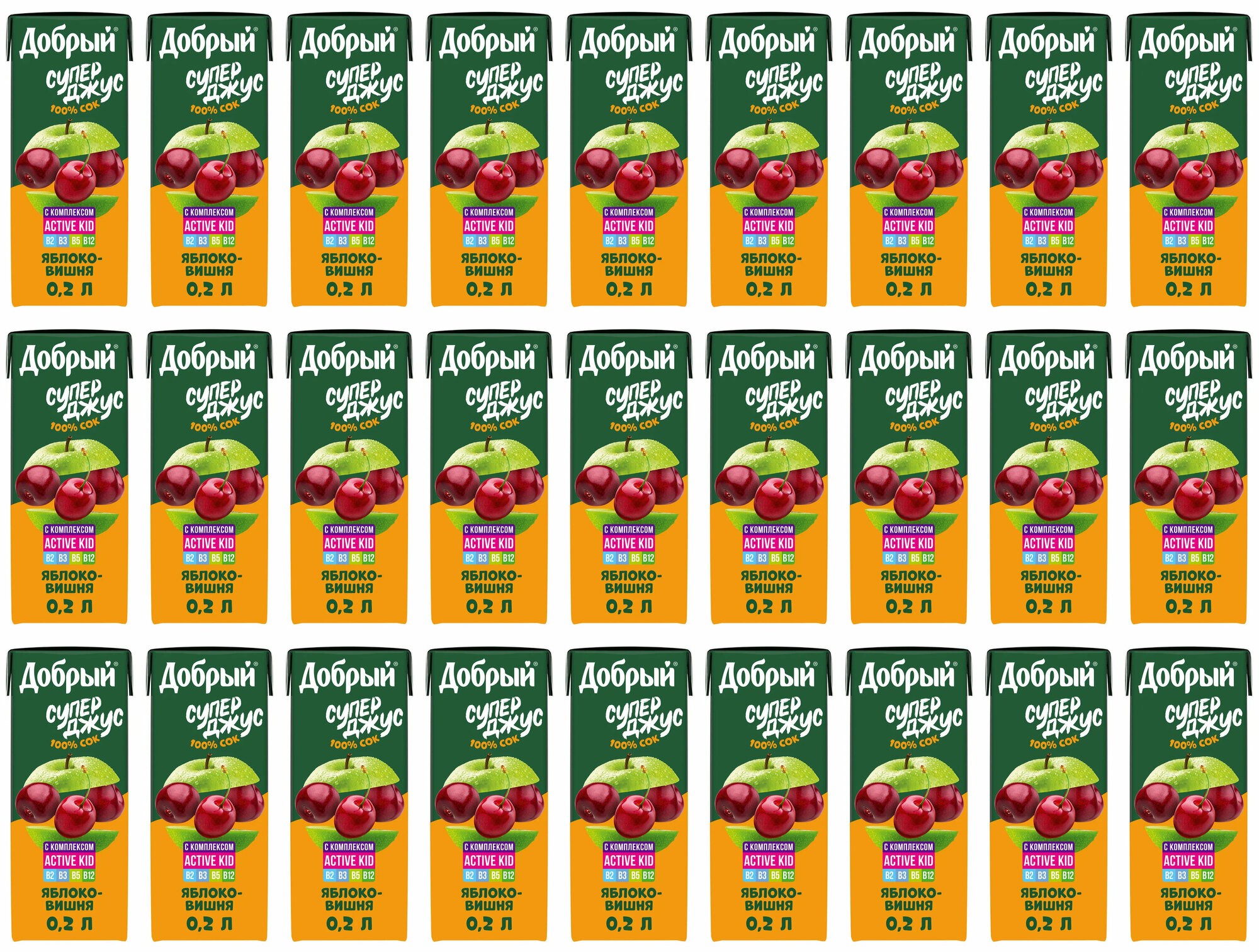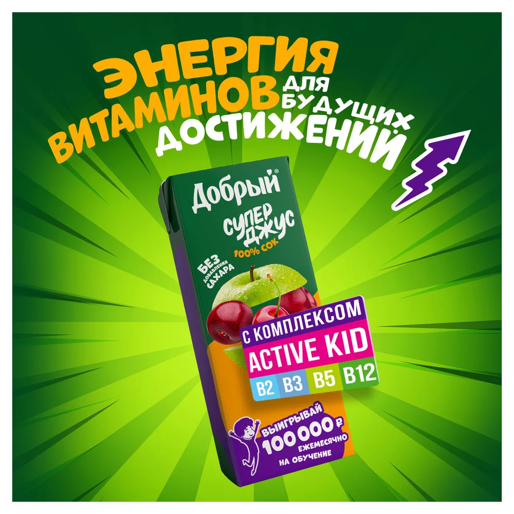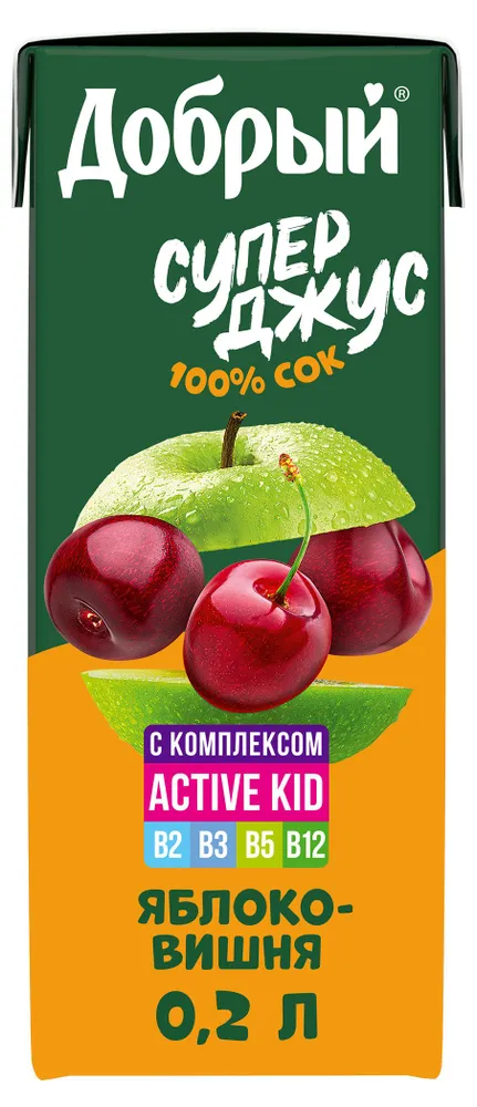 Сок Добрый Active kid яблоко вишня 200мл Мултон
