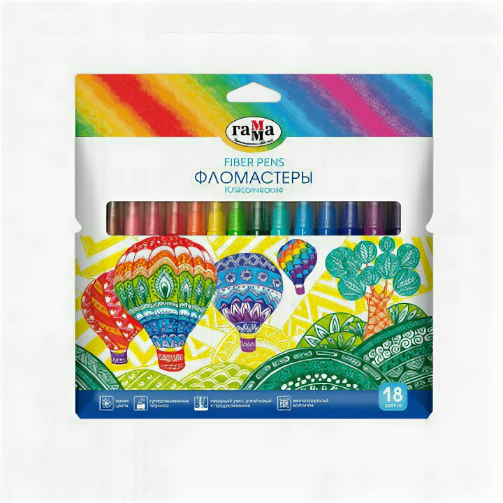Набор фломастеров Гамма Классические смываемые 18 цветов