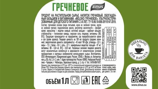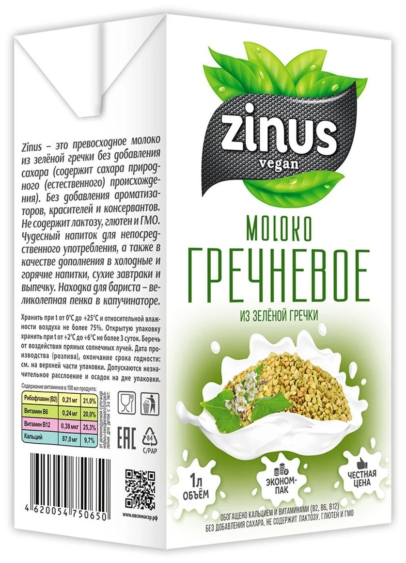 Zinus это 100% растительный продукт без добавления сахара, красителей и консервантов. Идеальный продукт для тех, кто заботится о своём здоровье. Подходит постящимся и для веганского питания. Зелёная гречка это природный источник энергии, витаминов и микроэлементов. Зелёная гречка богата витаминами группы В, в ней много фолиевой кислоты, железа, кальция, калия, цинка, также содержит в большом количестве рутин. Напиток дополнительно обогащен кальцием и витаминами (В2, В6, В12). Идеальный продукт для тех, кто заботится о своем здоровье.молоко; растительное молоко; молоко растительное; гречневое молоко; молоко гречневое; зинус молоко; zinus молоко; молоко zinus; растительное молоко zinus; молоко растительное zinus