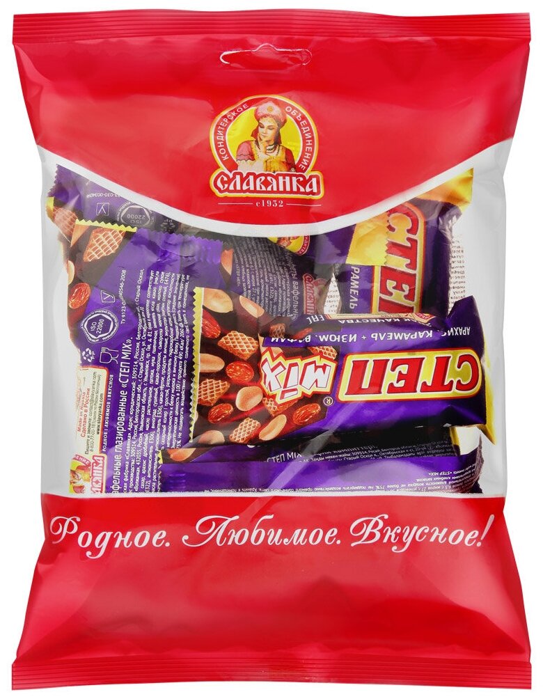Сервис сравнения цен СкидкаГИД предлагает сравнить цены на товар «Конфеты Степ Mix вафельные с изюмом арахисом и карамелью 200г Славянка»