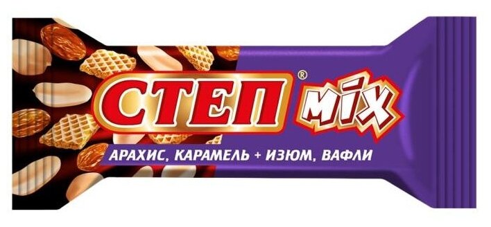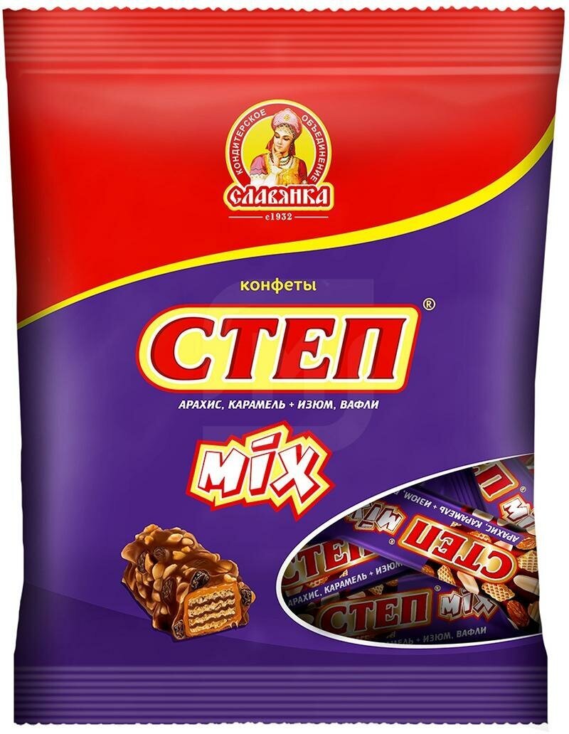 Конфеты Степ Mix вафельные с изюмом арахисом и карамелью 200г Славянка