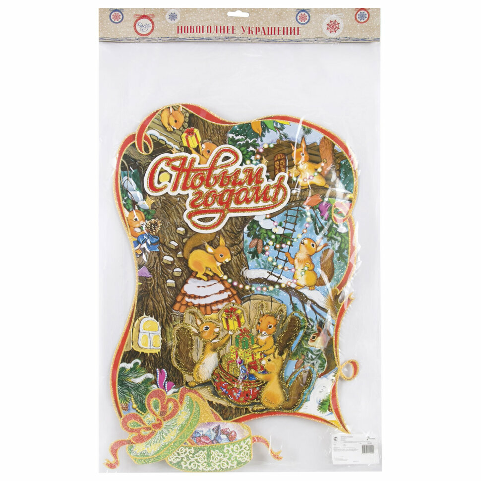 Украшение новогоднее на окно Magic Time Беличье семейство 34*49см Феникс present