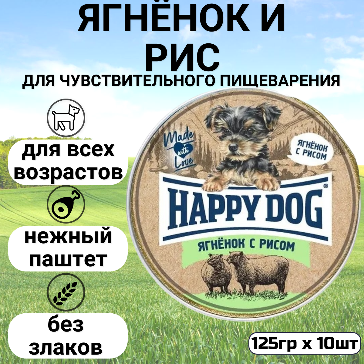 Корм для собак Happy Dog паштет с ягненком и рисом 125г