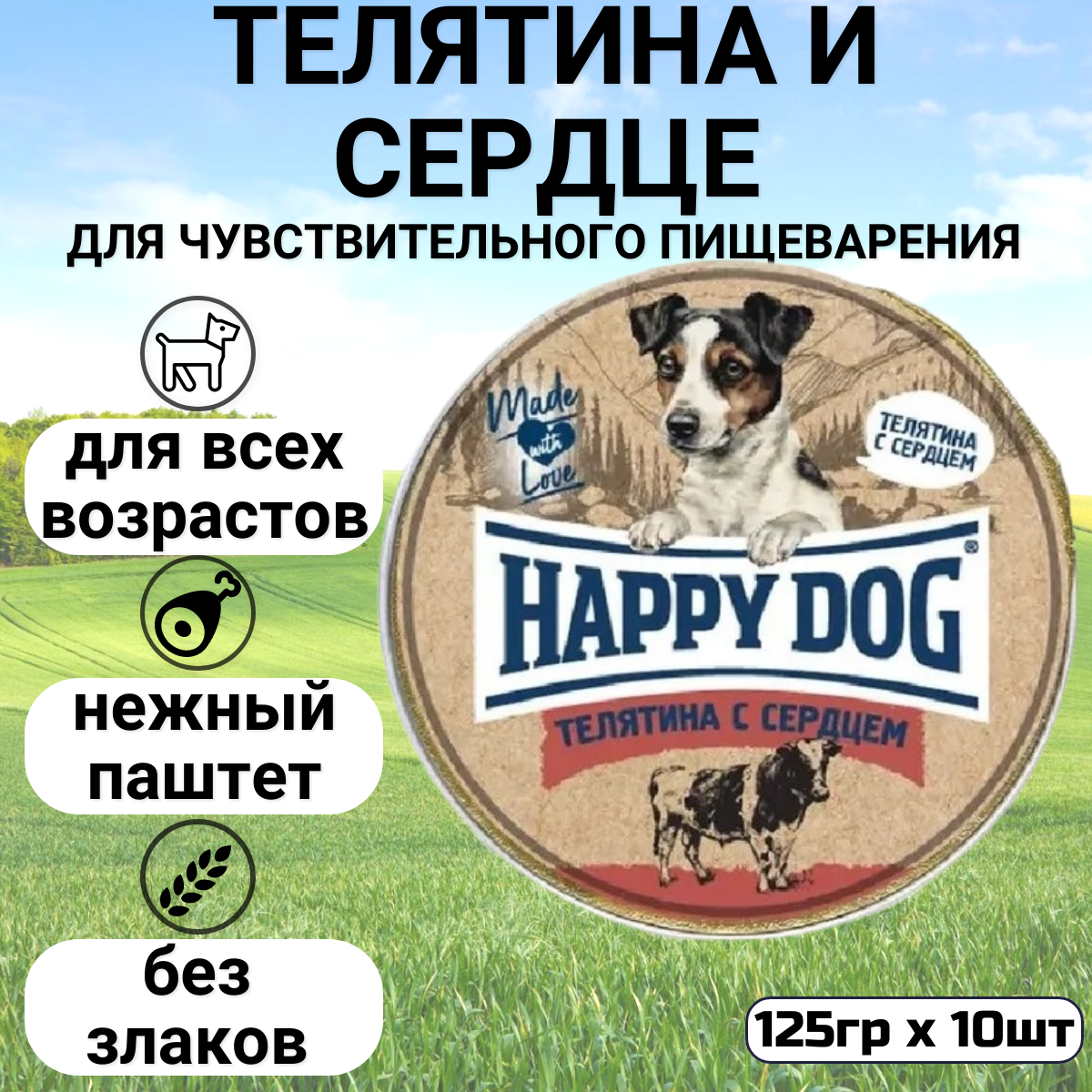 Корм для собак Happy Dog паштет телятина с сердцем 125г